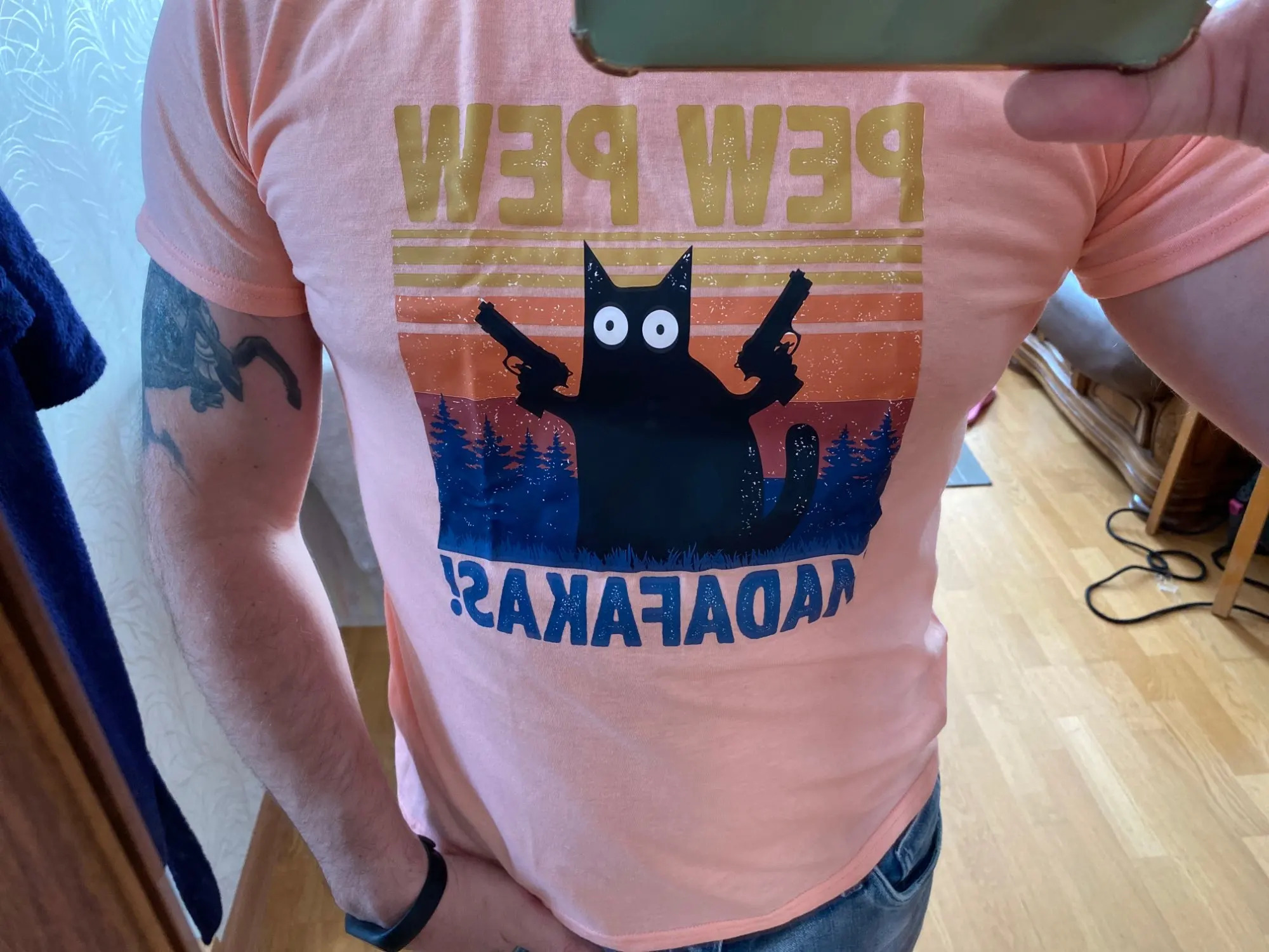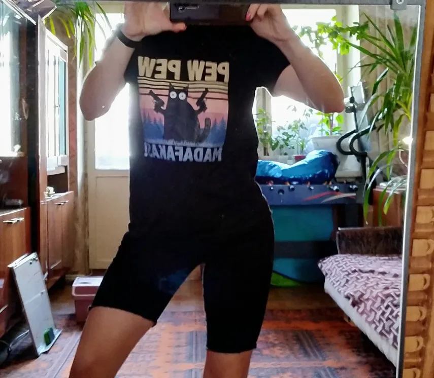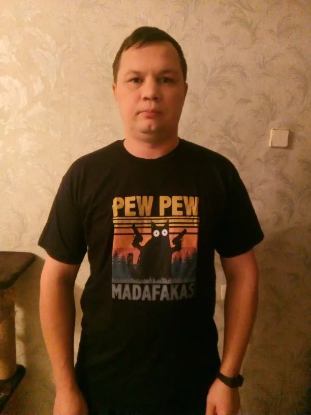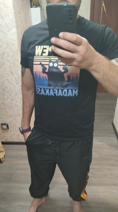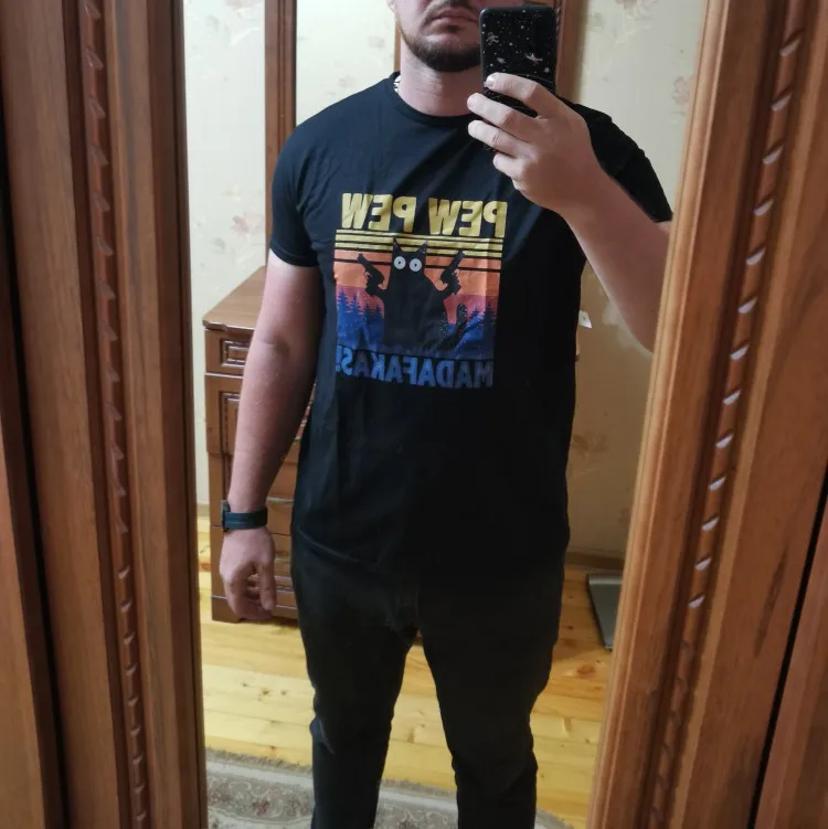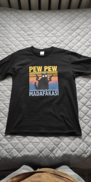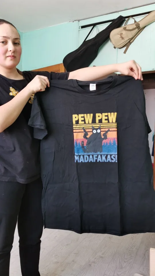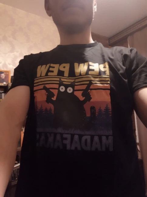 Футболку заказывала 2XL по моему, и, она идеально подошла! Хороший и яркий принт. Забавный. А с самой футболкой тоже всё в порядке. Нету никаких торчащих ниток, или типа того. Спасибо вам большое!✨