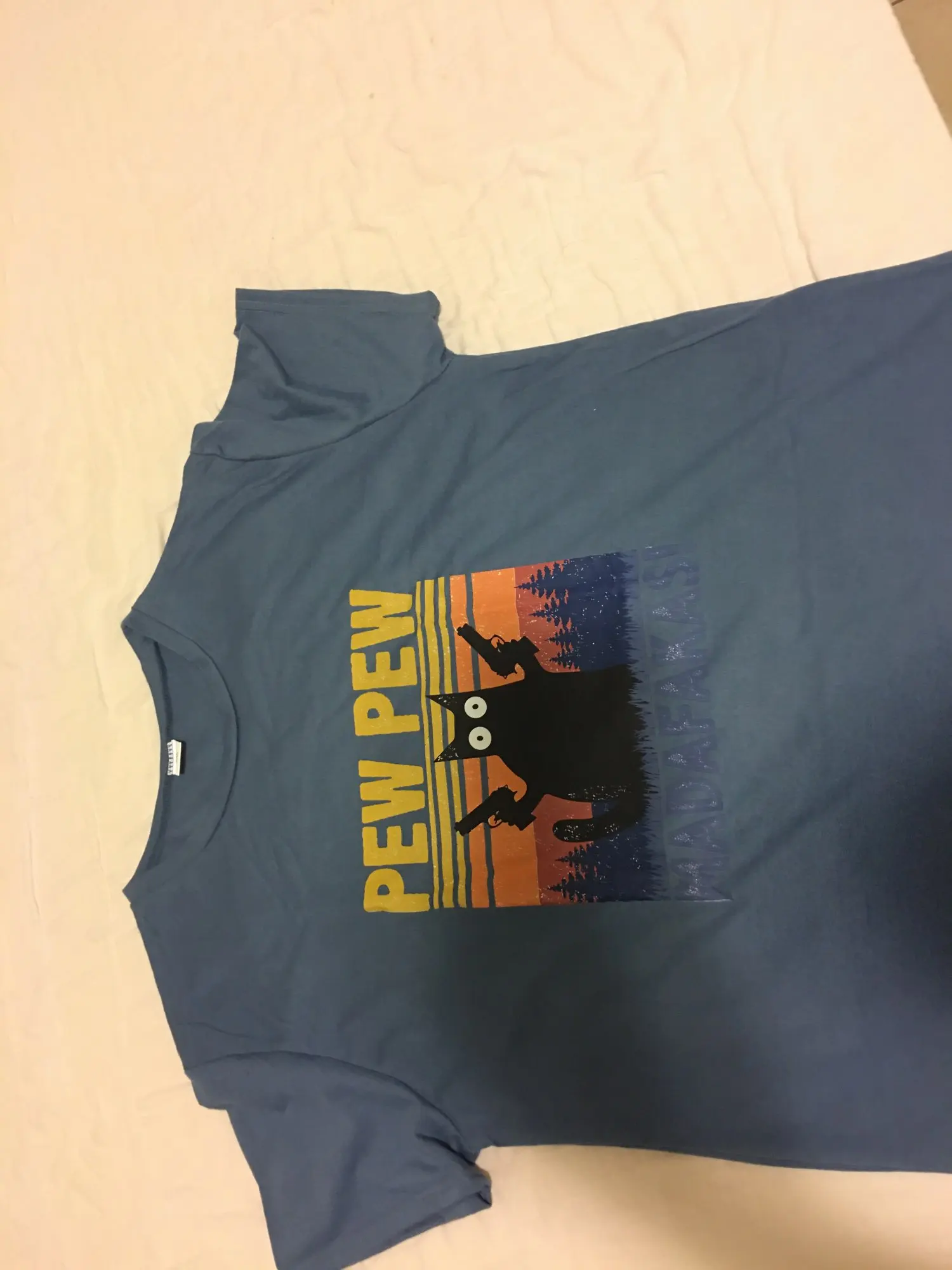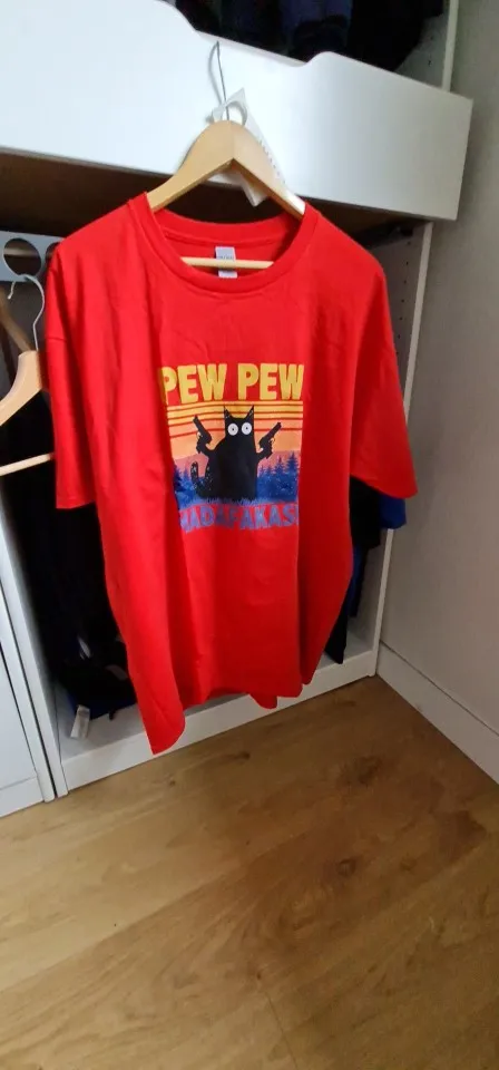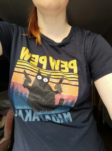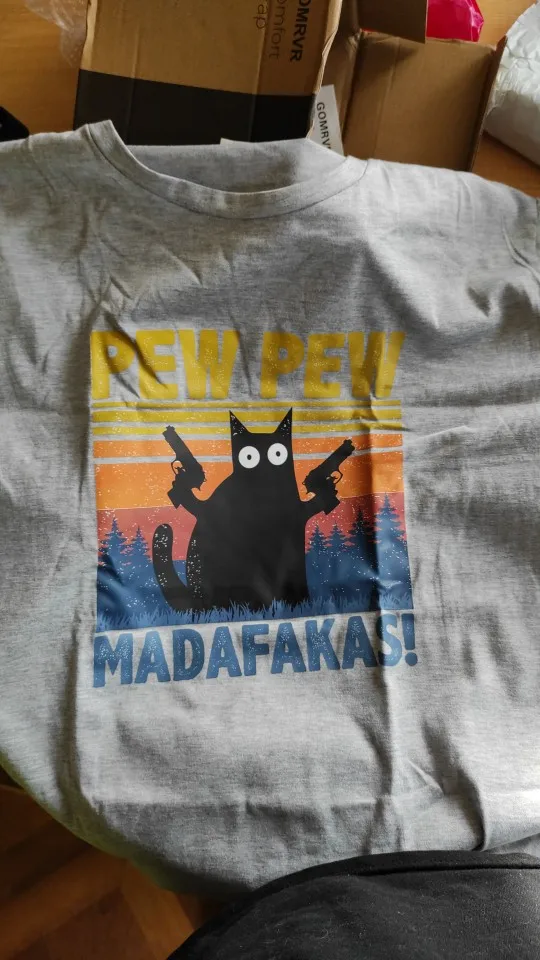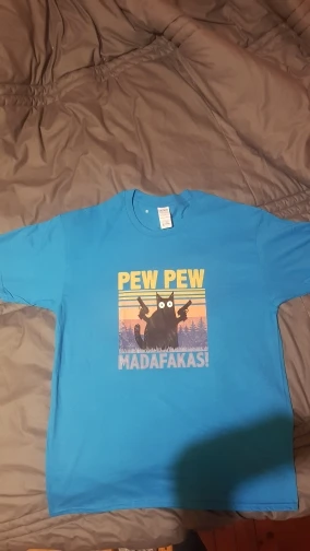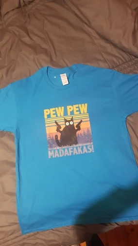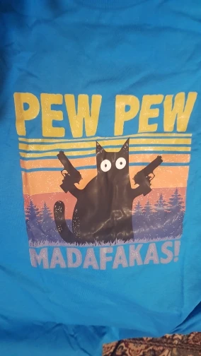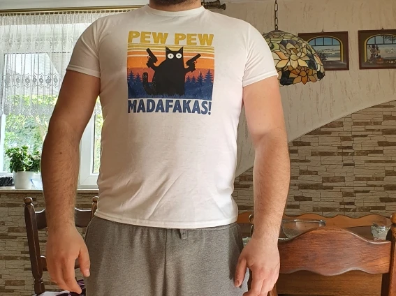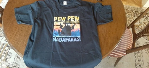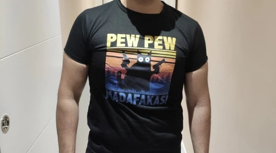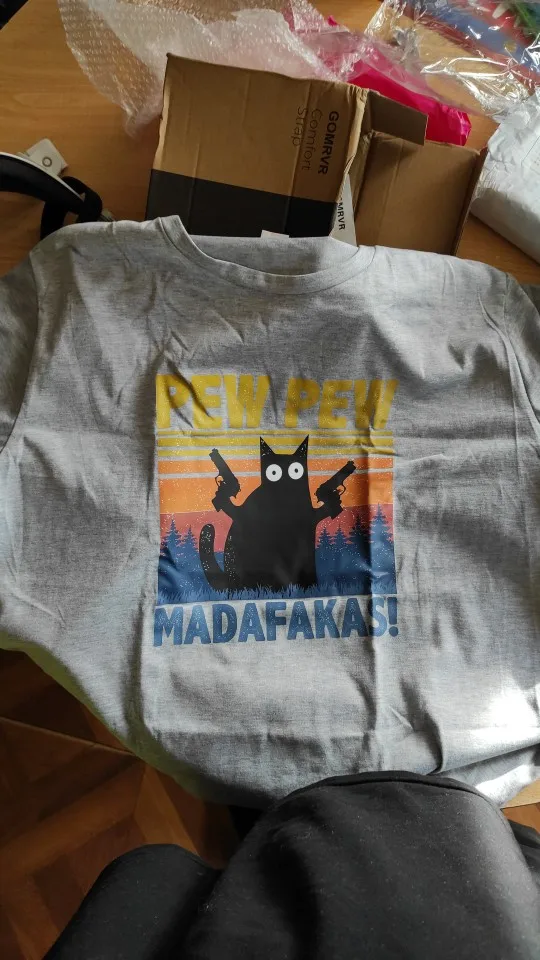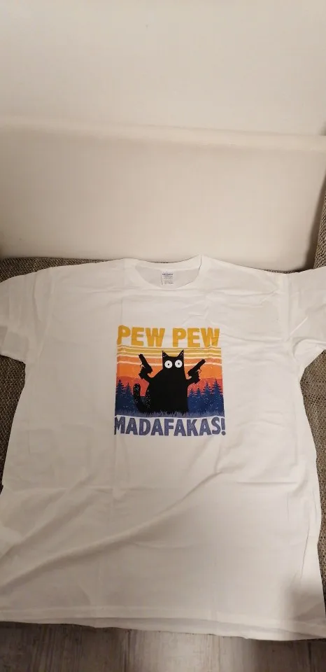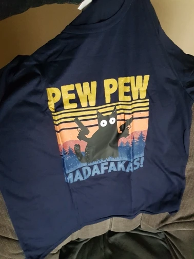 Футболку заказывала 2XL по моему, и, она идеально подошла! Хороший и яркий принт. Забавный. А с самой футболкой тоже всё в порядке. Нету никаких торчащих ниток, или типа того. Спасибо вам большое!✨