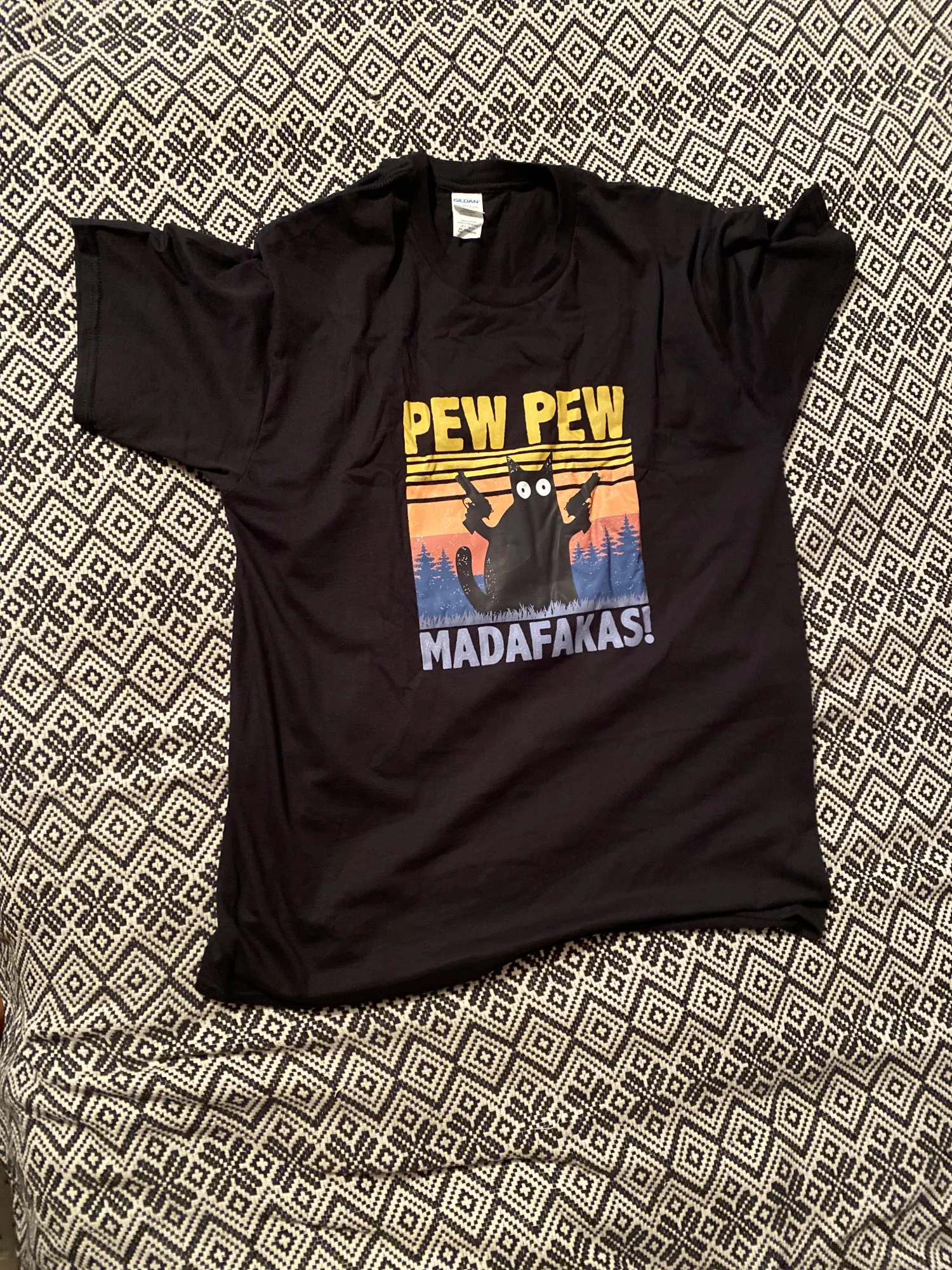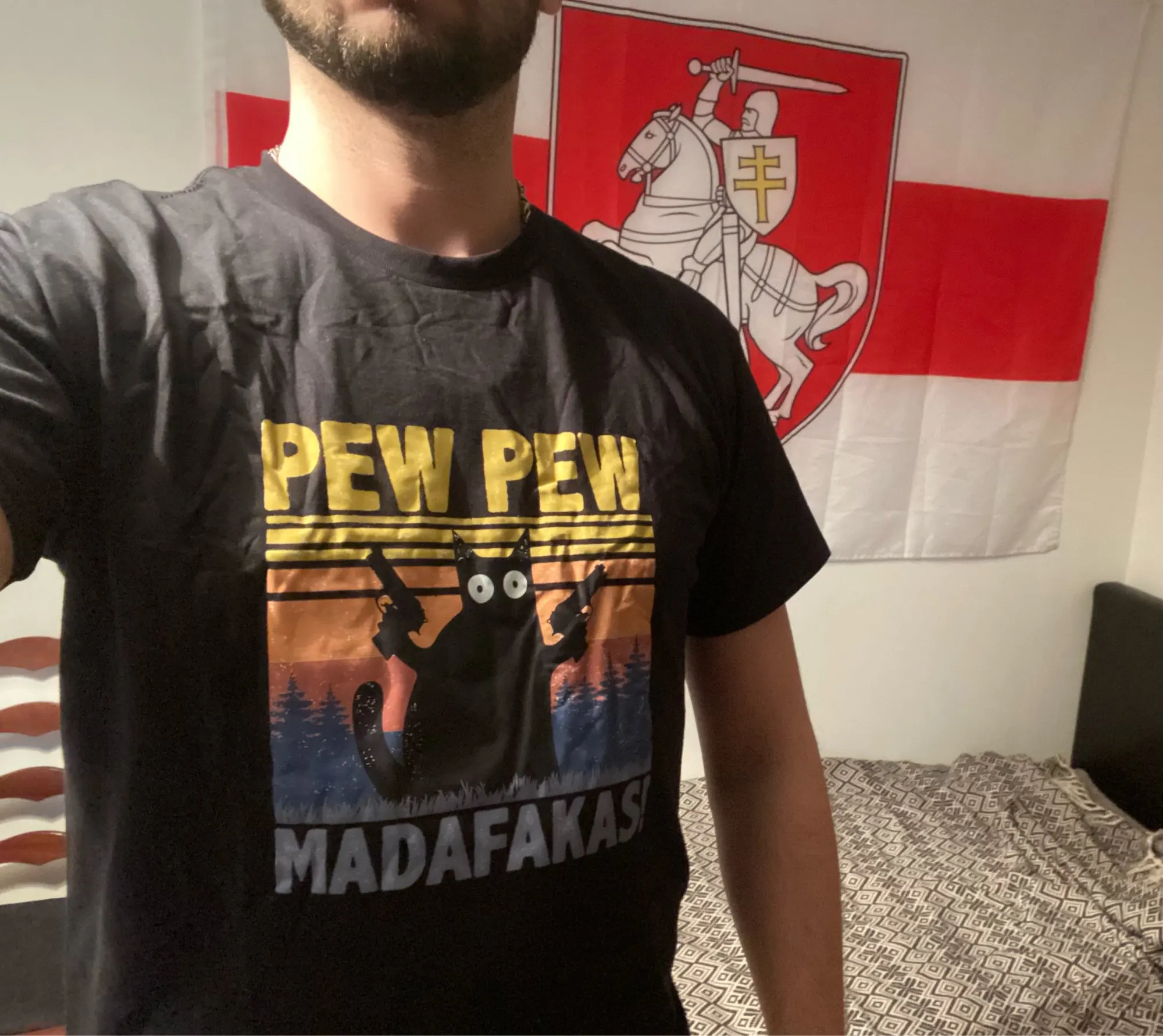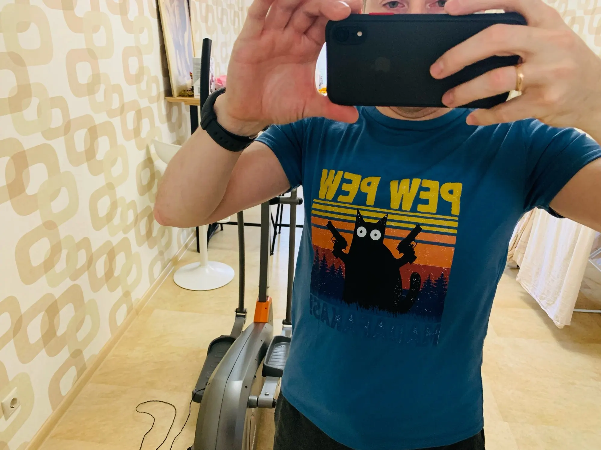 Футболку заказывала 2XL по моему, и, она идеально подошла! Хороший и яркий принт. Забавный. А с самой футболкой тоже всё в порядке. Нету никаких торчащих ниток, или типа того. Спасибо вам большое!✨