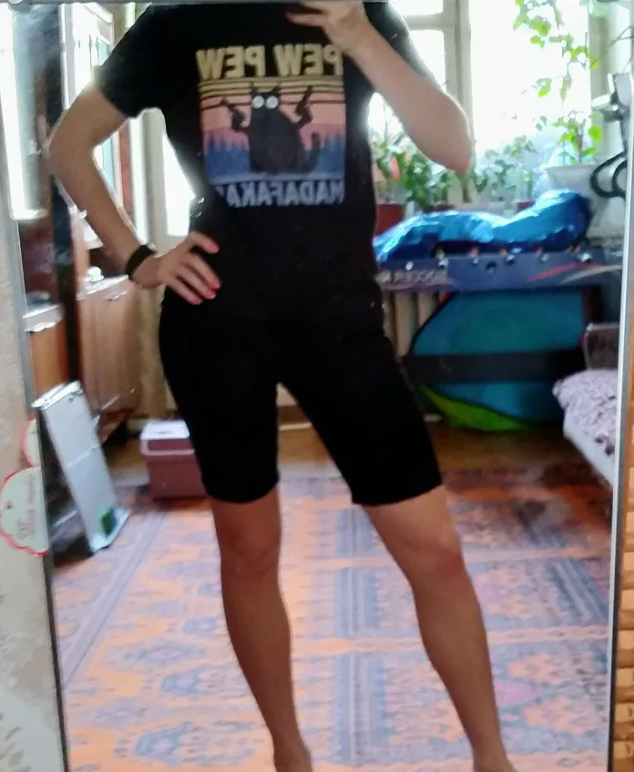 В целом футболка неплохая, но оказалась маловата, так что смело выбирайте на один размер больше того, что обычно носите