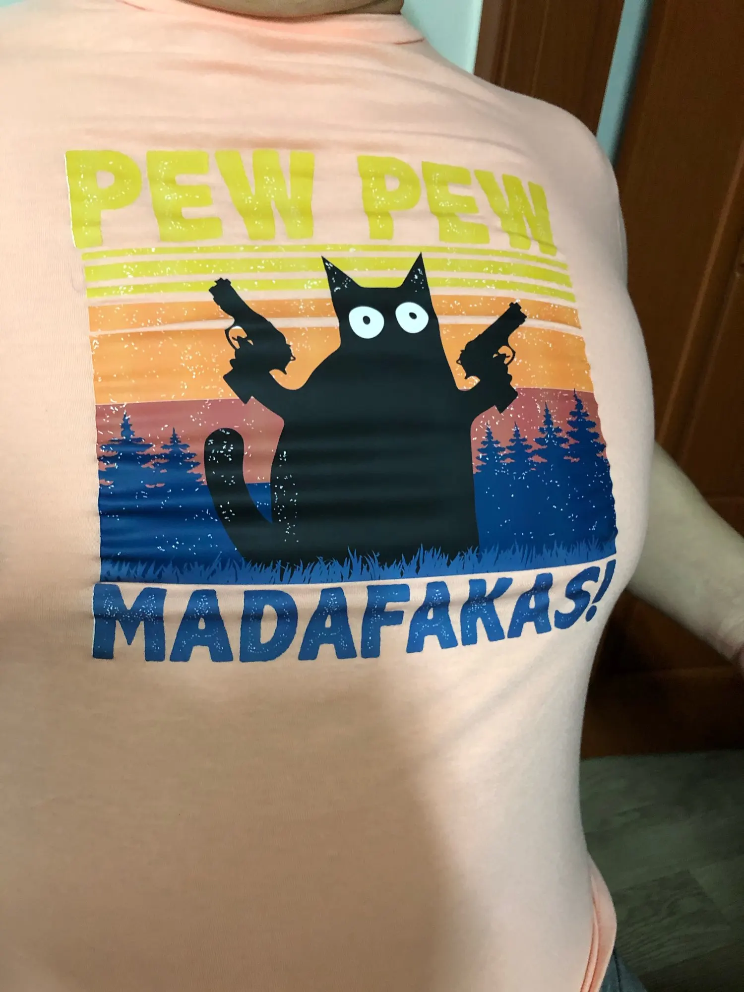 Качество пошива хорошее, тонкий трикотаж, будет отлично на лето, принт яркий. Доставка 2-3 недели в Украину.