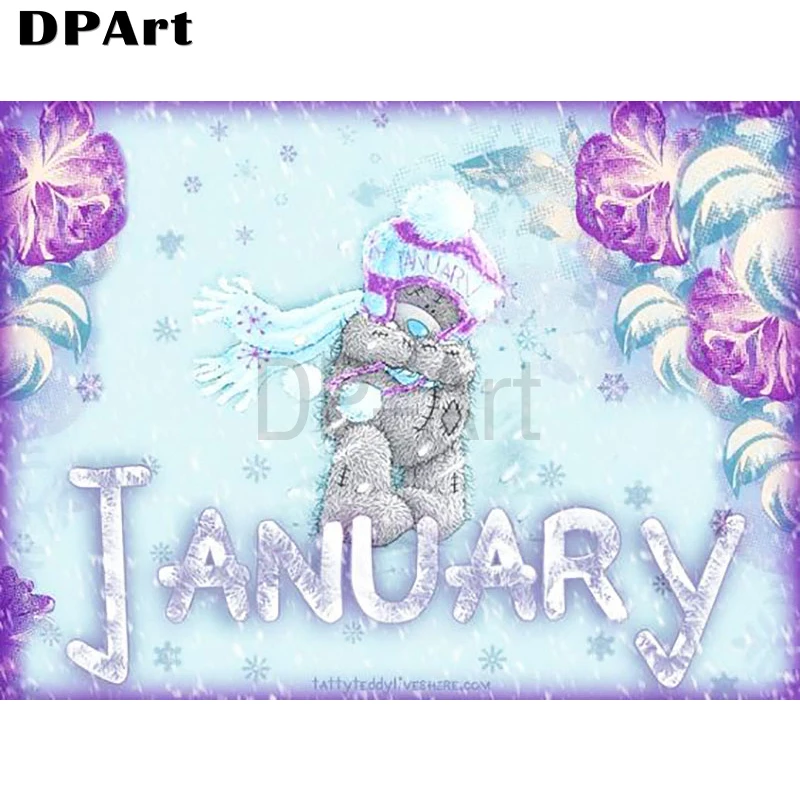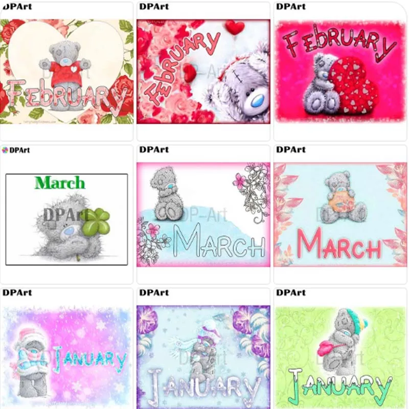 Алмазная живопись, полноразмернаякруглая картина с медведем, календарь, месяц, 5D, вышивка крестиком из страз, настенное искусство, M229