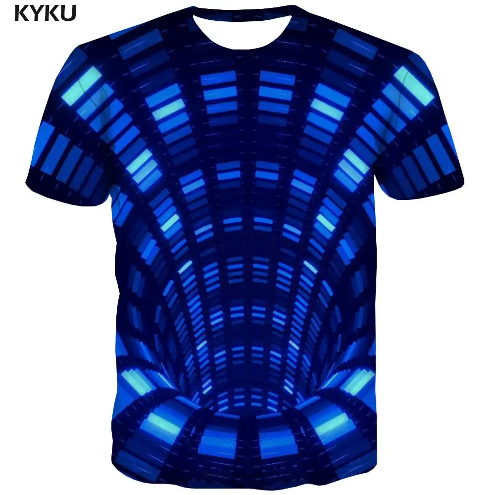 Мужская футболка с геометрическим принтом KYKU, повседневные градие...