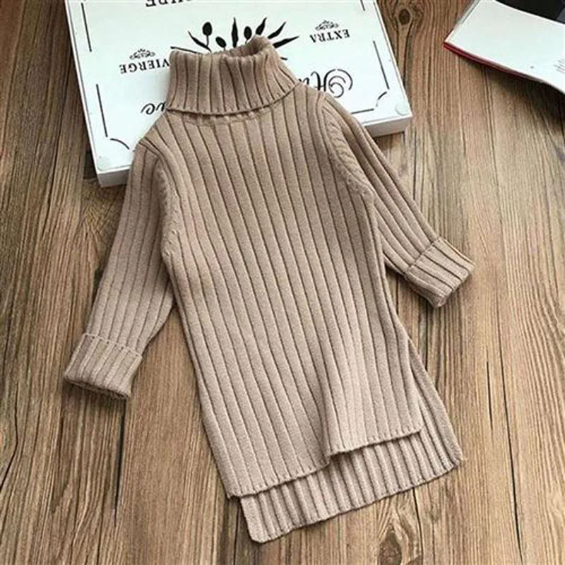 Детское трикотажное платье, однотонное, с высоким воротником, на осеньзиму