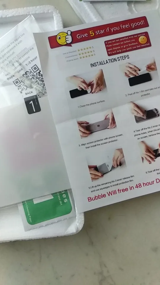 Йшла більше місяця, але все нормально. У комплекті суха та волога серветки, та пластиковий шпатель для розрівнювання плівки. все запаковано між двома пластинами пінопласту загальним габаритом як телефон.