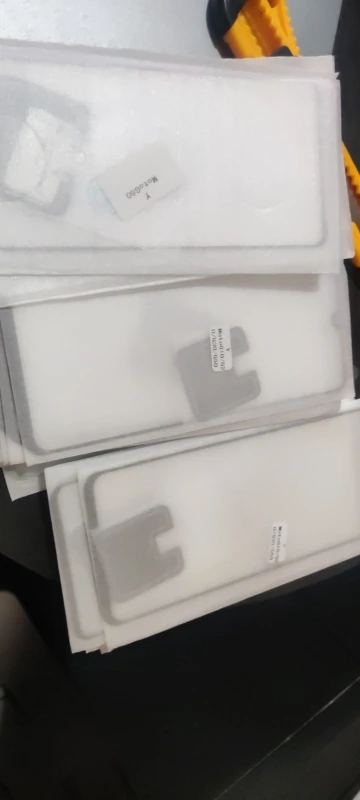 Аккуратно снимите маску с наклейкой. Раскройте 1/2 дюйма протектора экрана, не прикасайтесь к клейкой стороне.