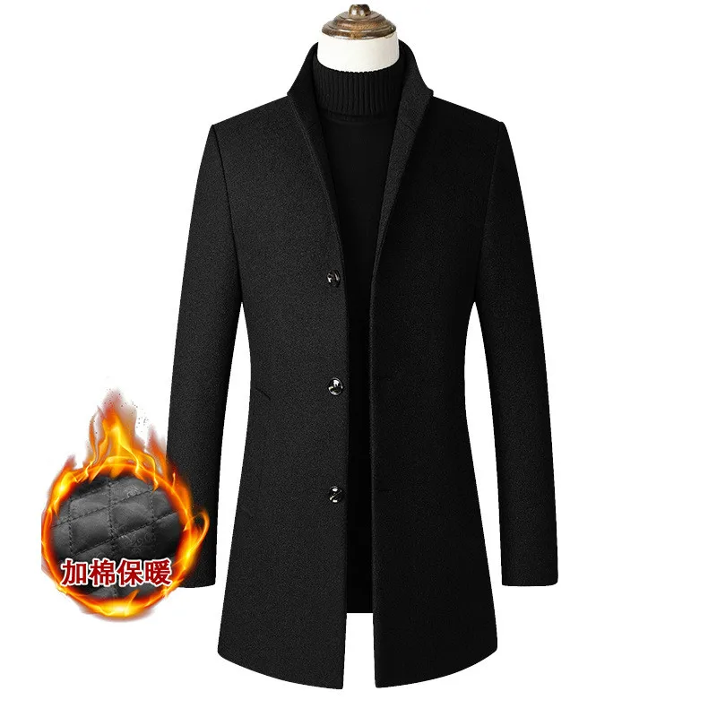 Мужское шерстяное пальто с воротником-стойкой, утепленное деловое п...