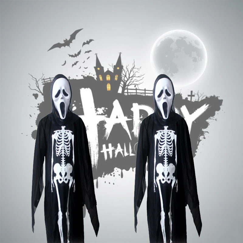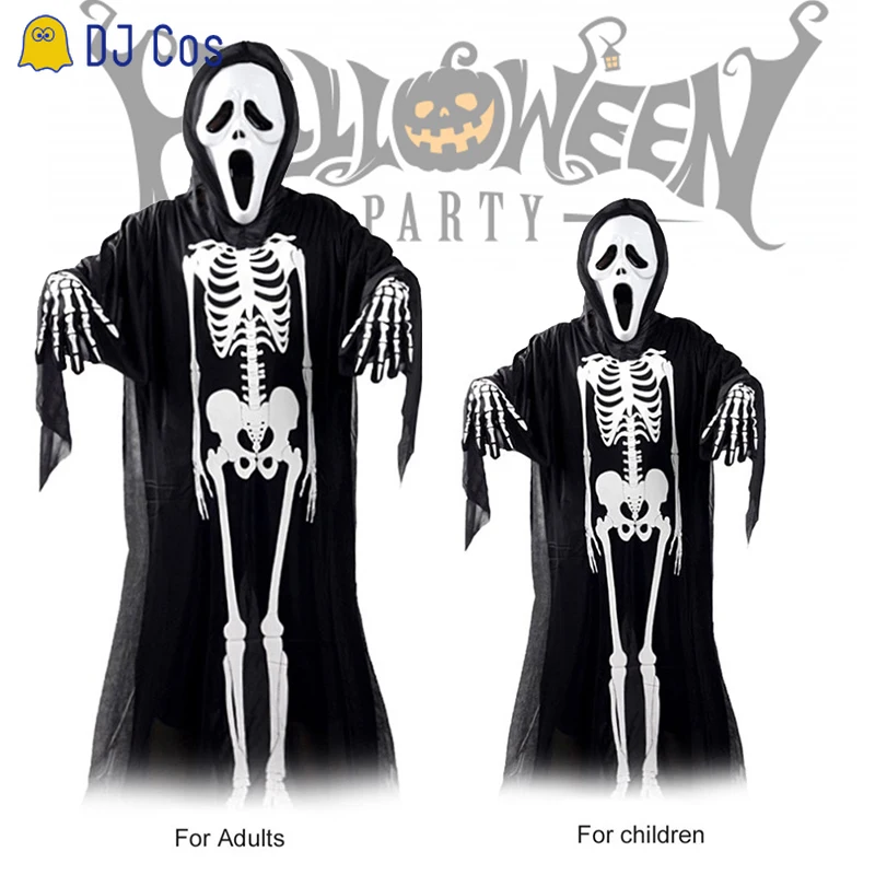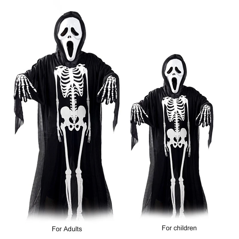 Костюмы на Хэллоуин для всей семьи, карнавальный костюм для родителей и детей, череп, скелет, ужас, страшные халаты, призрак, для взрослых, для детей, косплей, накидка