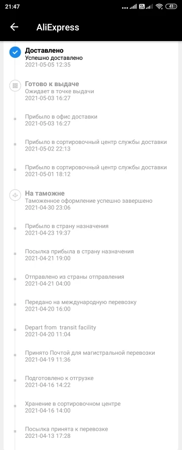 Страна: RU Доставка: Cainiao Super Economy 14.04.2021