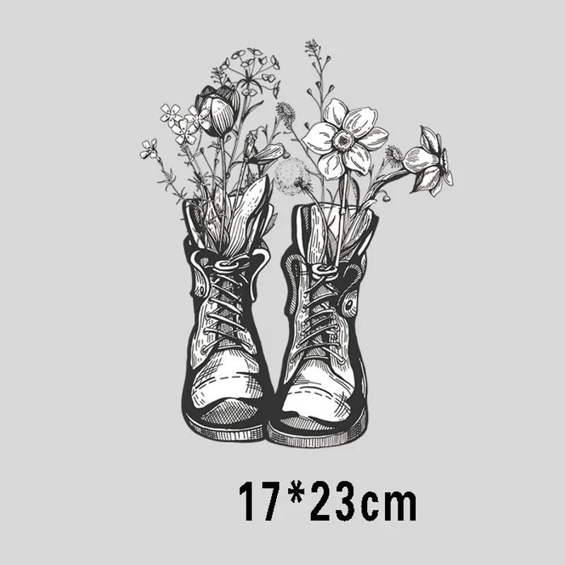 23x17 см Цветочные туфли, патчи для самостоятельного нанесения тепла на одежду, футболку, термотрансферные наклейки, декоративная печать
