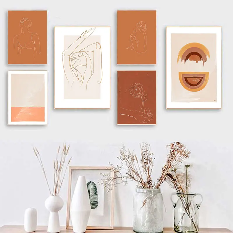 Абстрактная сгоревшая оранжевая настенная Картина на холсте Терракотовая Радуга минималистичный Однолинейный рисунок плакаты Бохо принты домашний декор