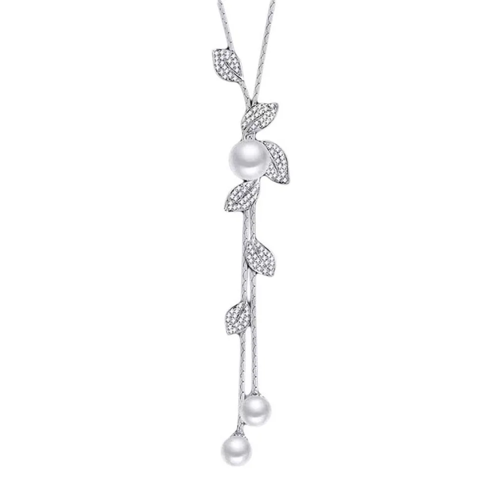 Женская подвеска с искусственным жемчугом, стразы, листья, длинная цепочка, ожерелье, ювелирное изделие, подарок, хрустальные ожерелья и кулоны для женщин, модное ювелирное изделие
