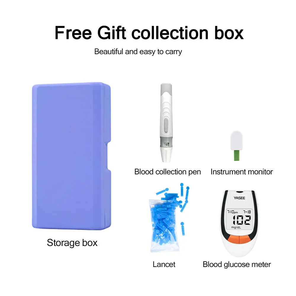 Глюкометр * 1 Игла для забора крови * 1 Ящик для хранения * 1 Упаковочная коробка * 1 Тестовая Бумага * 50/100 Игла * 50/100 Тестовый чип * 1 Руководство * 1