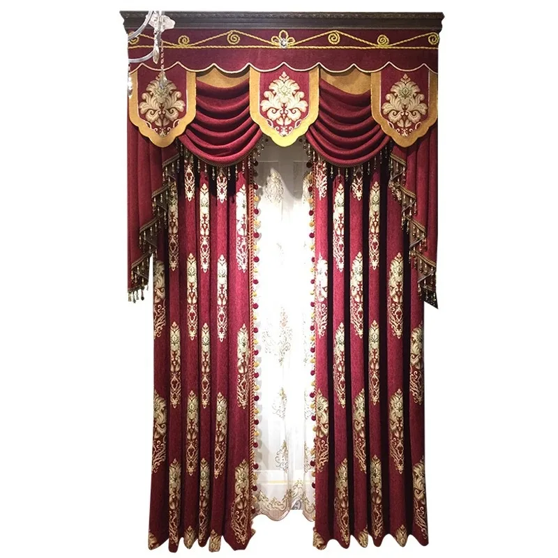Шторы на окна в европейском ретро-стиле с вышивкой из шенили
