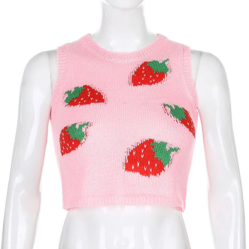 Осенний вязаный женский свитер с клубничкой y 2K, жилет, женская уличная одежда, элегантная Милая одежда, повседневные топы для девочек, chaleco punto