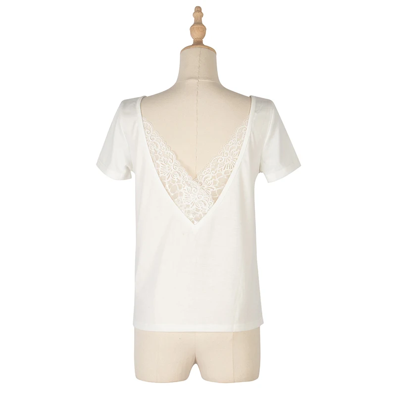 Женская футболка с V-образным вырезом, популярная стильная Базовая футболка с открытой спиной, Женский Топ, простая футболка с коротким рукавом, лето 2020
