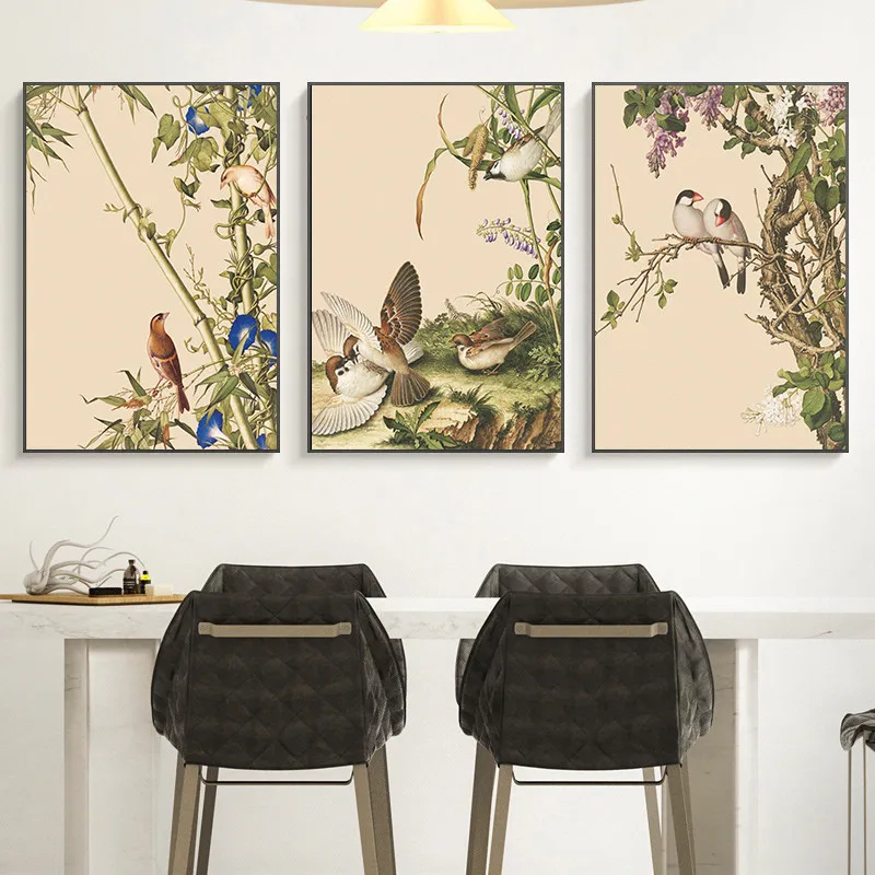 Картина с цветами и птицами в китайском стиле, постер для украшения...