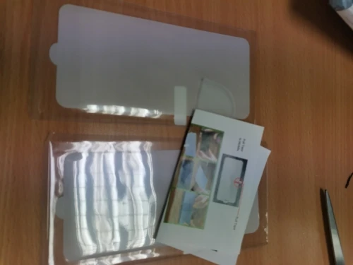 Пришла за 10 дней в Москву. Не получилось наклеить без пузырей, списываю все на собственную криворукость. В наборе пленка, салфеточки и "шпатель" для выдавливания пузырей.