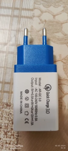 Шёл отслеживаемый пакетик 16 дней в Ижевск. Зарядник работает в двух режимах. Простая зарядка 5 вольт и быстрая зарядка 9 вольт. Но в обоих режимах напряжение на выходе занижено. При среднем токе заряда, корпус прилично нагревается. Если ток заряда будет больше, то зарядник наверняка сгорит. Годится для зарядки слабеньких телефонов.