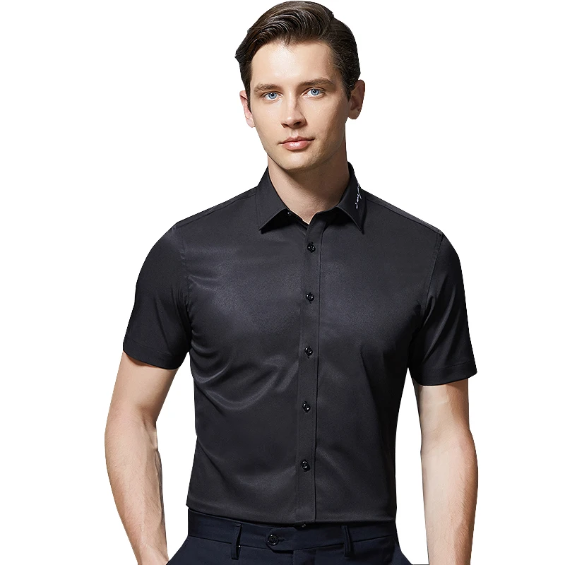 Рубашка мужская стрейчевая с коротким рукавом, однотонная черная белая эластичная формальная сорочка, приталенный силуэт, блузка для работы, 2020