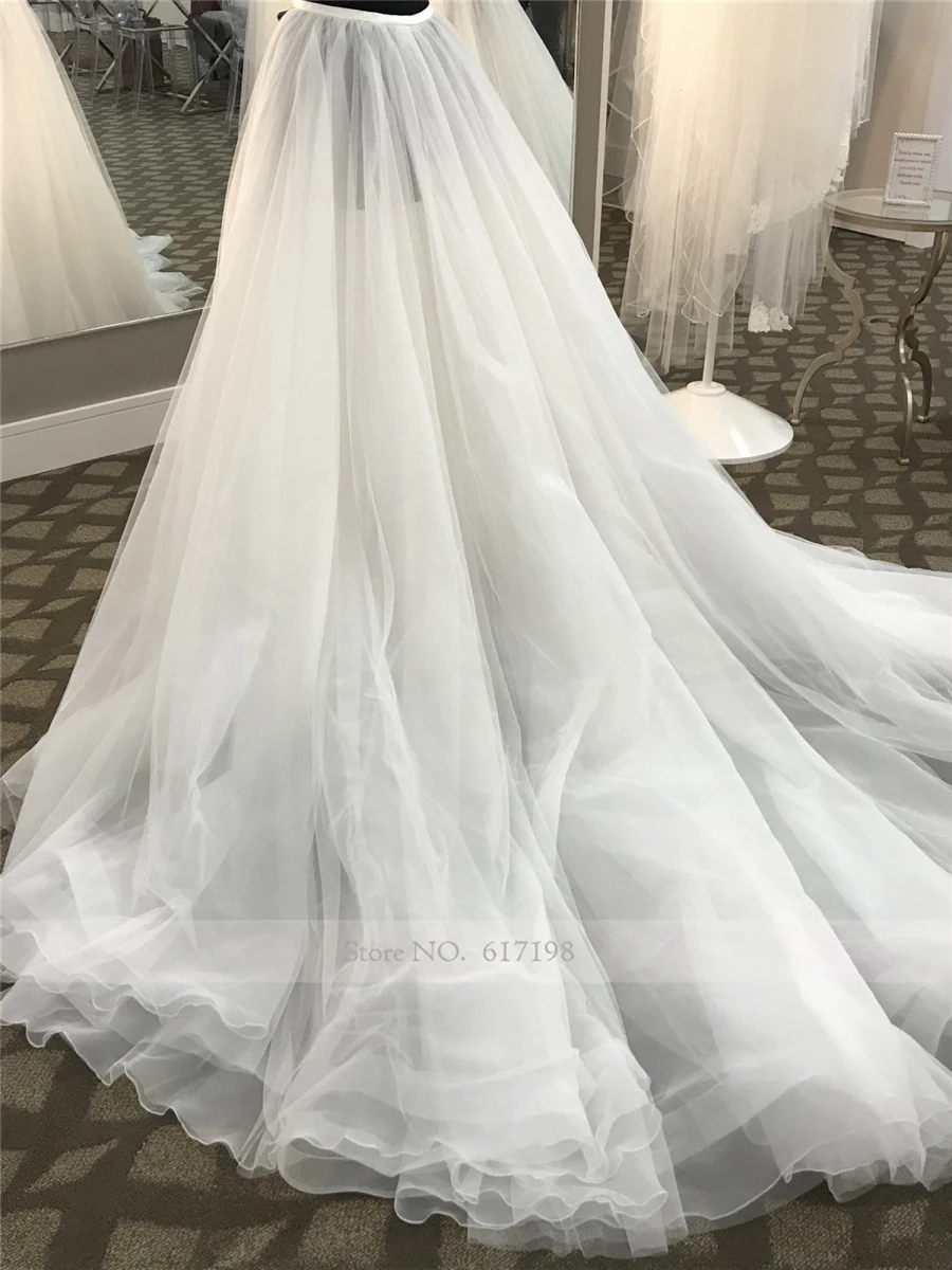 Съемная юбка для свадебного платья, четырехслойная органзаТюль со шлейфом для часовни, съемный шлейф с передним разрезом для невесты