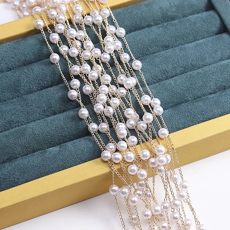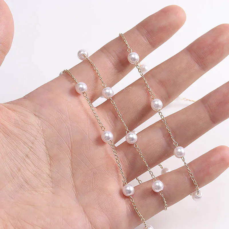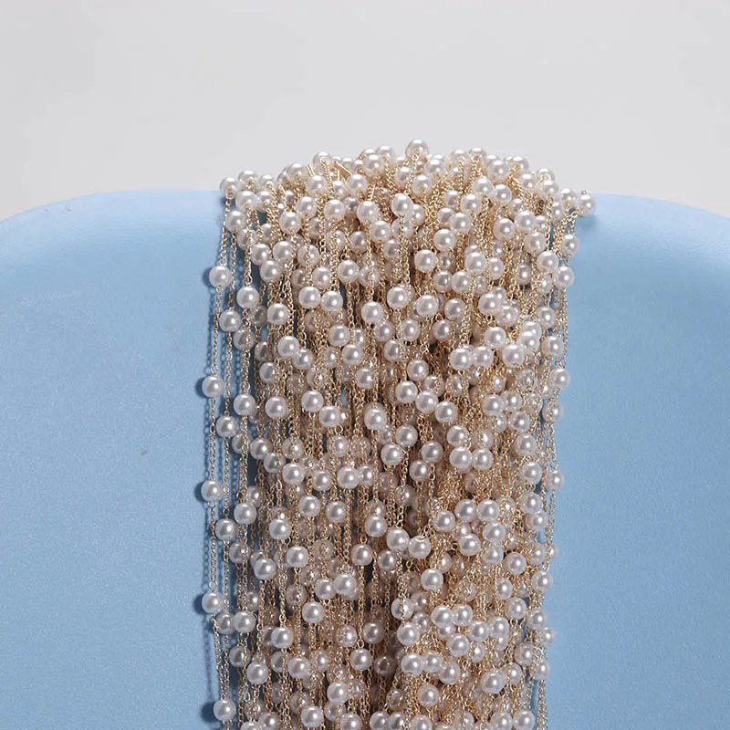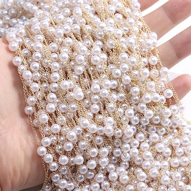 Медные жемчужные бусины 2 м, цепочка из звеньев для рукоделия с жемчужными бусинами для изготовления ювелирных изделий своими руками, аксессуары, Ювелирная фурнитура, оптовая продажа