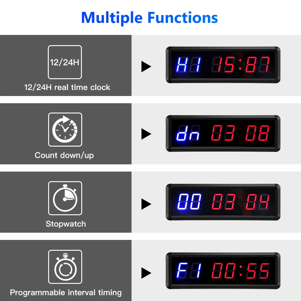 Светодиодные настенные часы с дистанционным управлением и таймером для тренировок в тренажерном зале, фитнеса