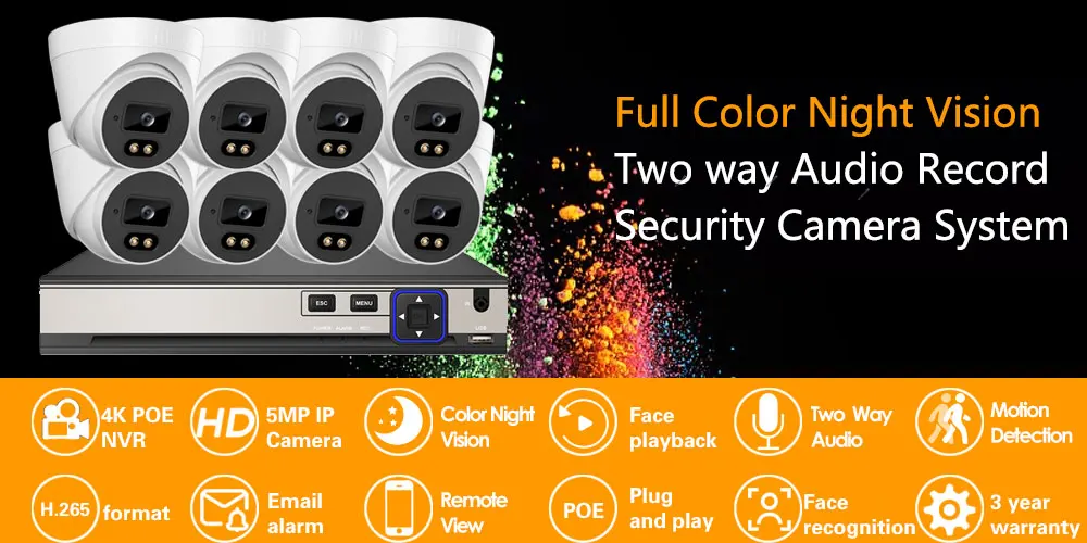 1. Ультра HD 4K дисплей высокой четкости, NVR может поддерживать 8 МП и 4K max, вы можете подключить 720p,1080p,3mp,4mp ,5mp, камеры 8mp & 4k с нашим POE NVR;2. Ультра HD 5MP POE ip-камера, АБС-пластик, подходит для внутреннего и наружного использования, надежная Домашняя безопасность;3. Наш NVR поддерживает распознавание лиц, воспроизведение лиц, обеспечивает ультра высокое разрешение видео наблюдения, обеспечивая максимальную детализацию и четкость в наличии;4. Наш NVR и камеры поддерживают расширенное H.265 Сжатие видео, питание через Ethernet, подключи и работай, прост в использовании;5. Все камеры встроены в микрофон и динамик, Поддержка двусторонней аудиозаписи;6. Все камеры поддерживают Ultra HD Full Color Day Night Vision;7. Поддержка обнаружения движения, оповещения по электронной почте, воспроизведения видео и многоязычности;8. Поддержка Android,Iphone,Ipad,PC,VMS,P2P view;9. Удаленный доступ в любом месте, в любое время;
