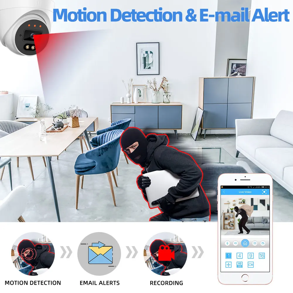 Можно настроить область, которую вы хотите контролировать, когда она срабатывает, она отправит сообщение на вашу электронную почту, вы можете получить информацию из первых рук, независимо от того, когда и где вы находитесь.