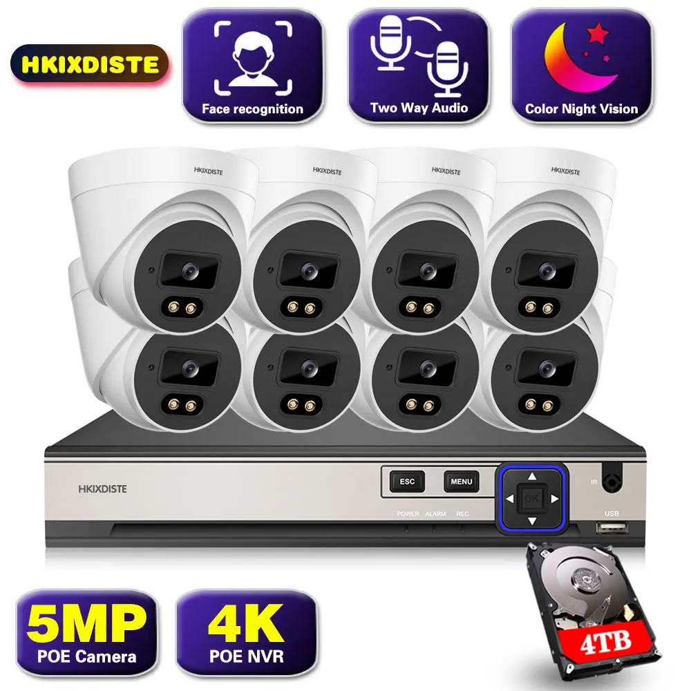 4K 8CH Ultra HD CCTV 5MP IP камера система AI распознавание лица NVR комплект купольная домашняя двухсторонняя аудио видео система видеонаблюдения