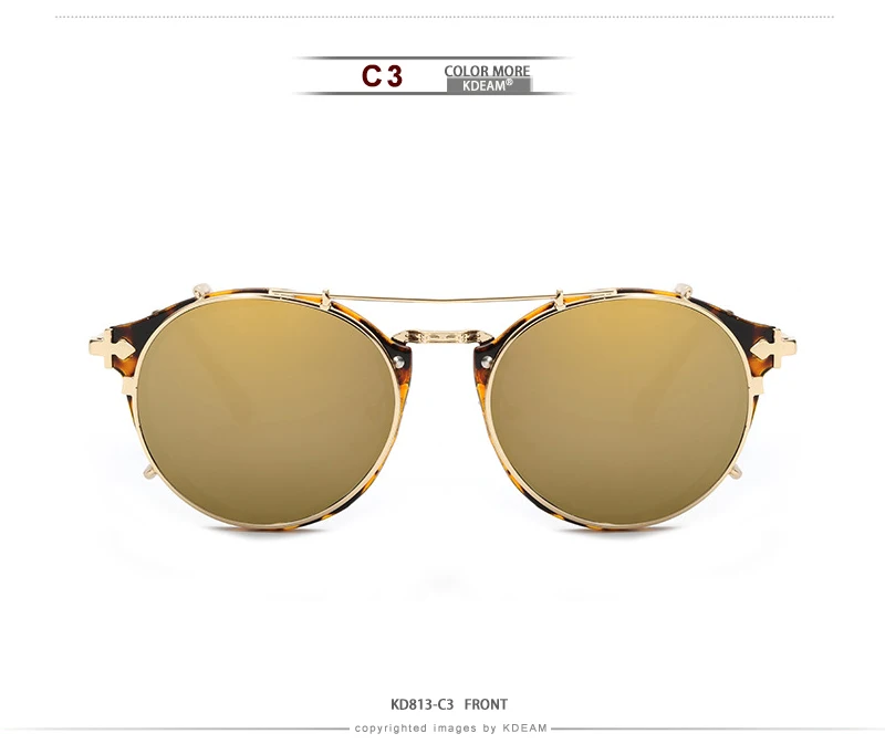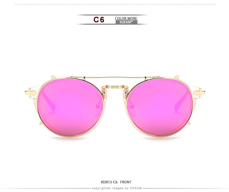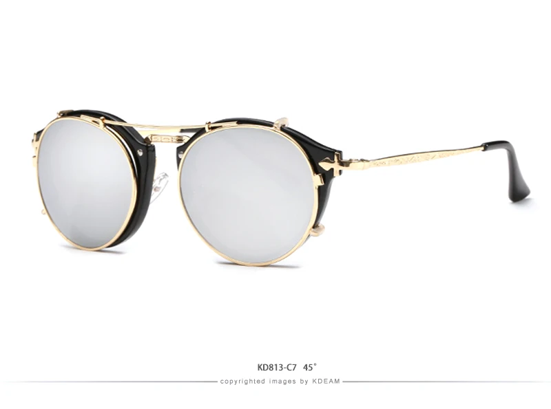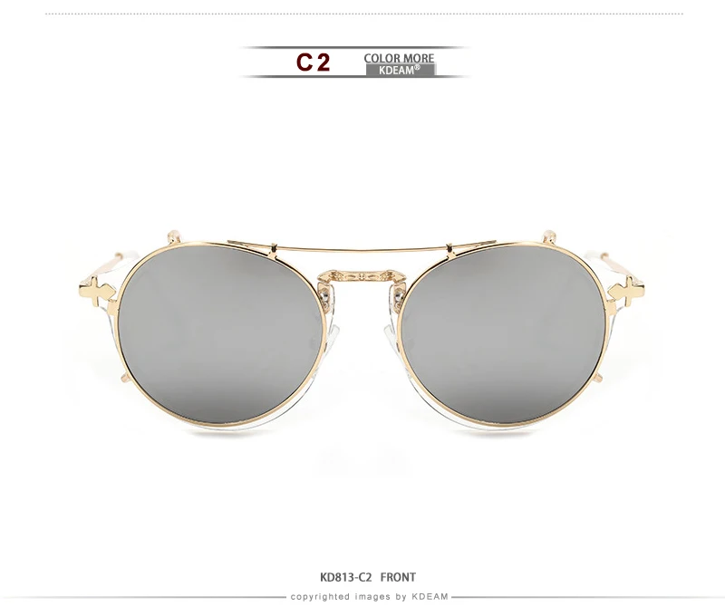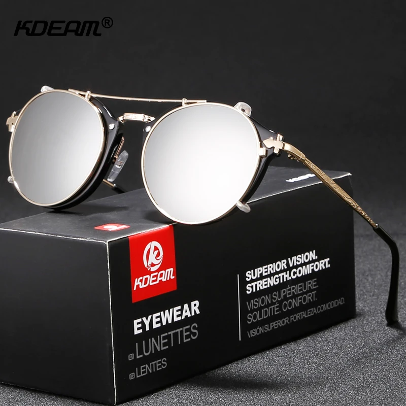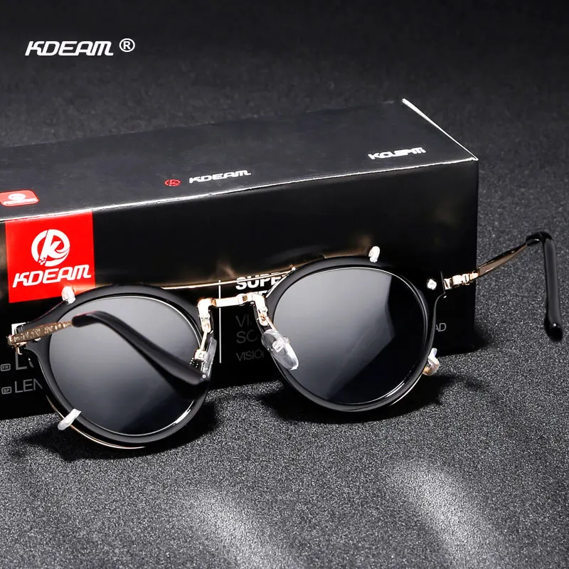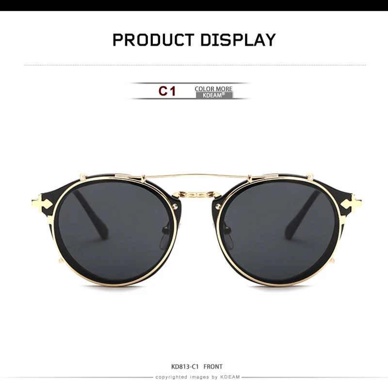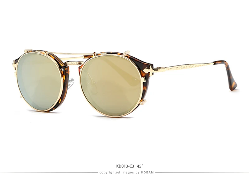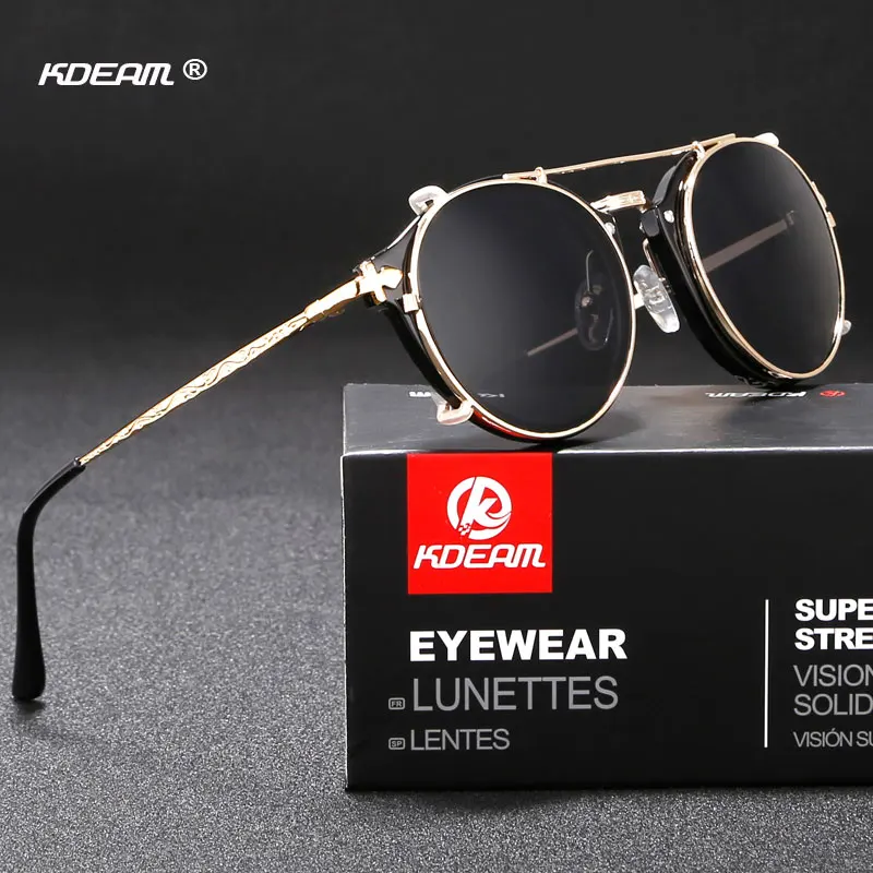 Солнцезащитные очки KDEAM в металлической оправе UV400 для мужчин и женщин, модные круглые солнечные аксессуары в стиле стимпанк, в ретро стиле, с бесплатной коробкой