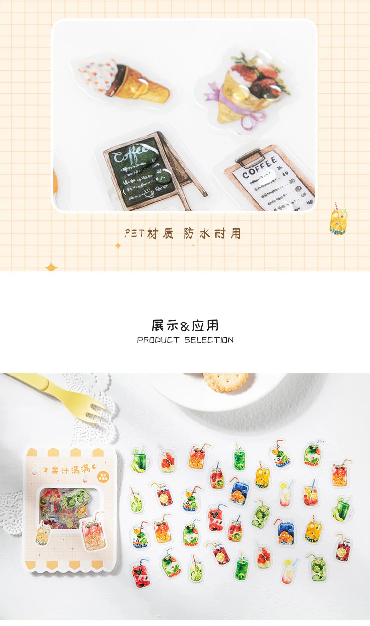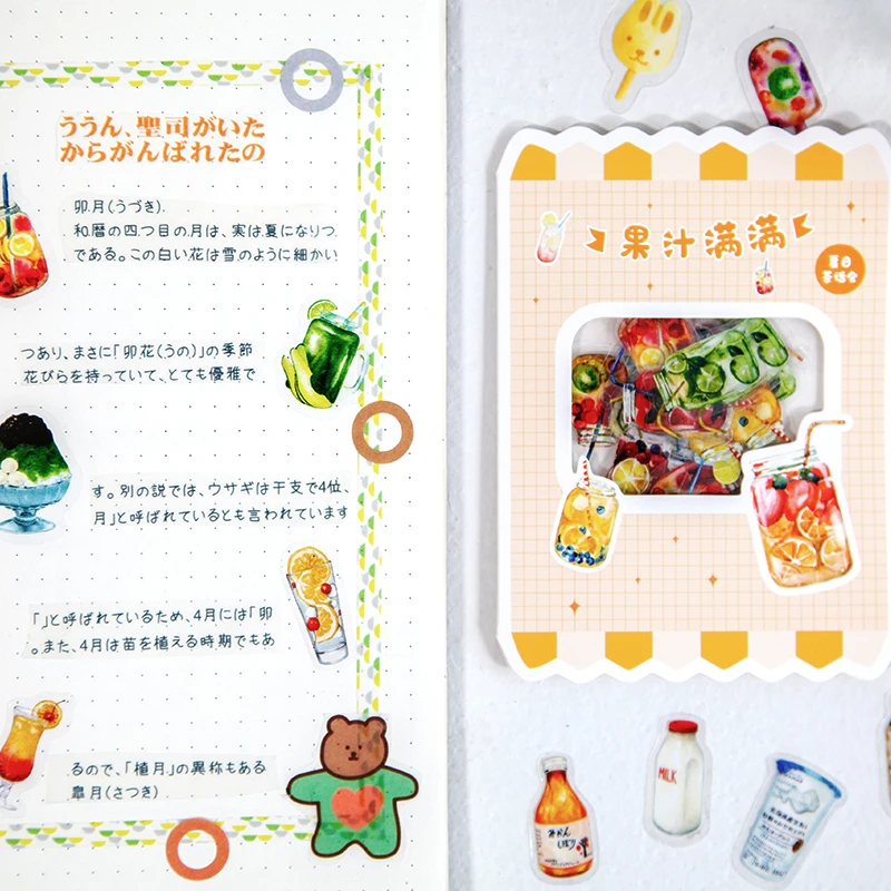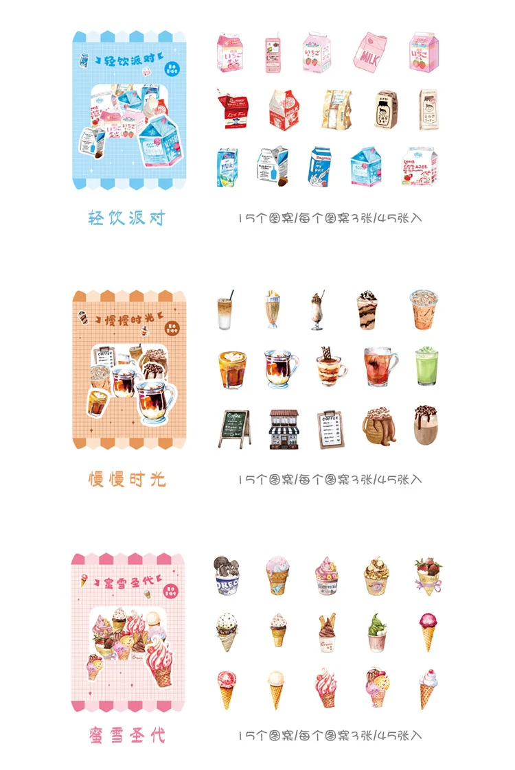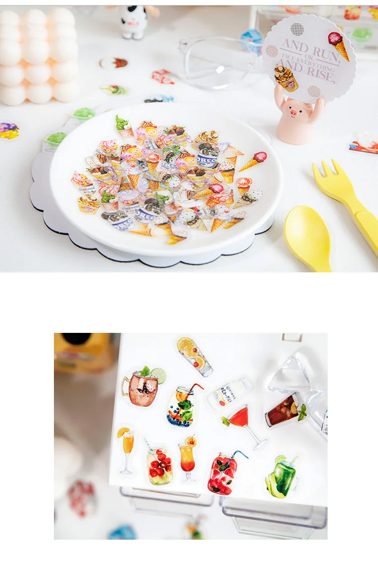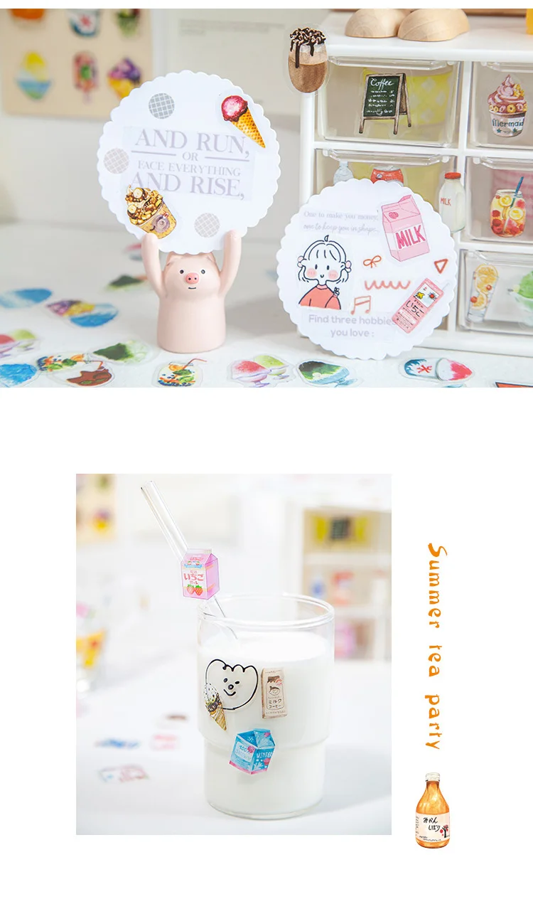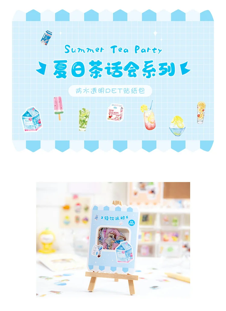 45 шт летние чайные вечерние Kawaii прозрачные наклейки набор кофейных соков для напитков канцелярские наклейки Клейкие декоративные этикетки для дневника