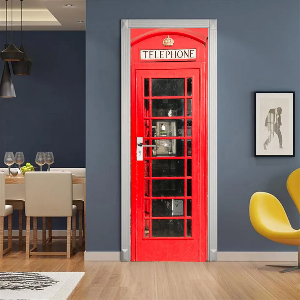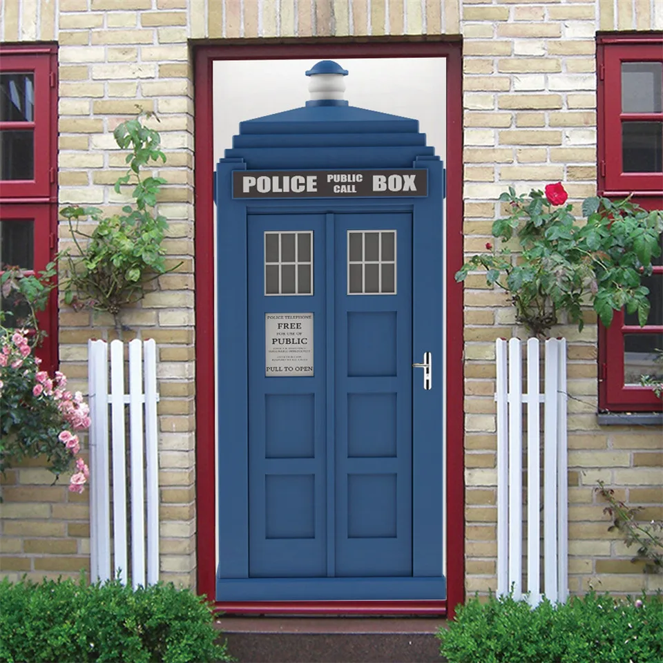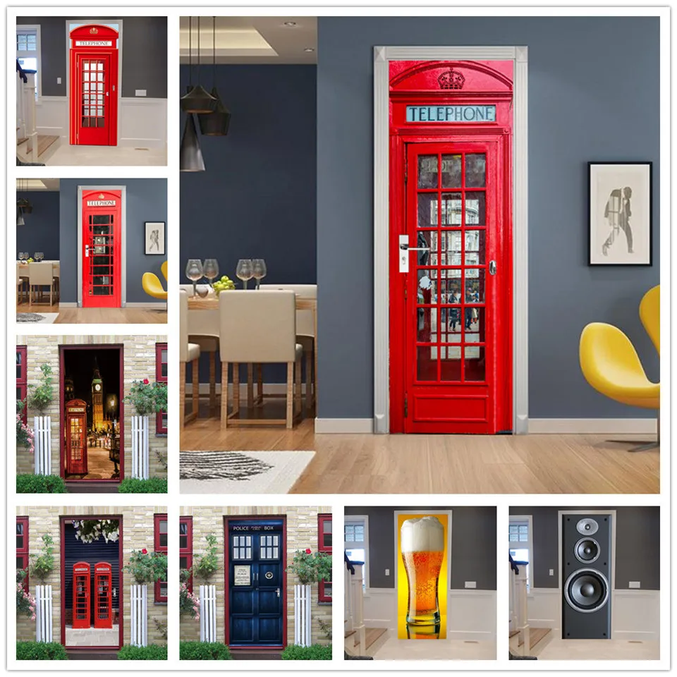 Украшение дверей, обои, 3D Наклейка на стену, телефон, полиция, коробка, настенная самоклеящаяся виниловая наклейка, домашний декор, дверной постер, наклейка