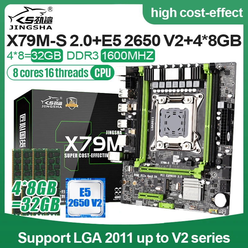 Комплект материнской платы X79 с LGA2011 combos Xeon E5 2650 V2 CPU 4 шт. x 8 ГБ = 32 Гб память ECC REG DDR3 RAM