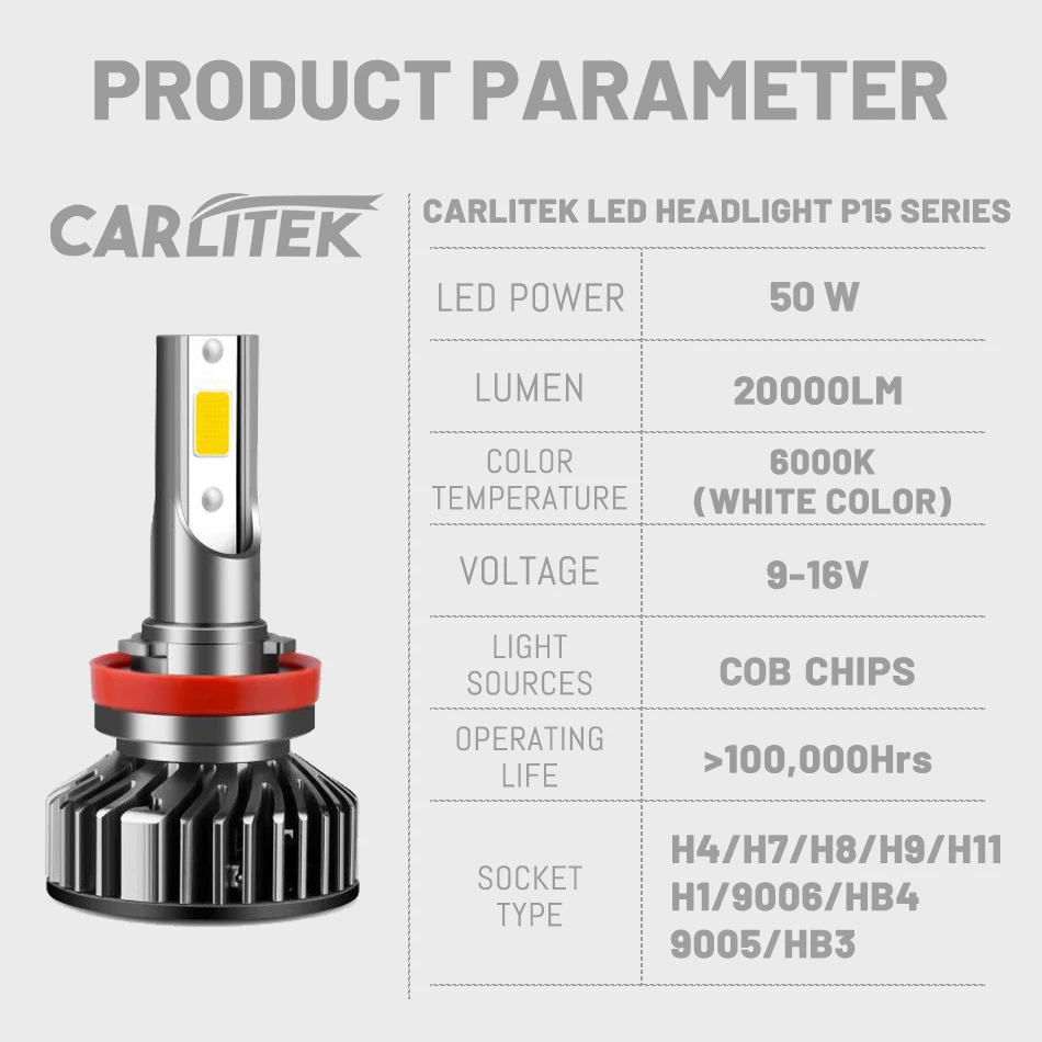 СВЕТОДИОДНАЯ головная лампа CARLITEK H1 H4 H7 H11 автомобильные аксессуары H8 H9 9005 9006 светильник РА 6000K HB3 HB4 головная фара для VW Polo T5 Golf 6