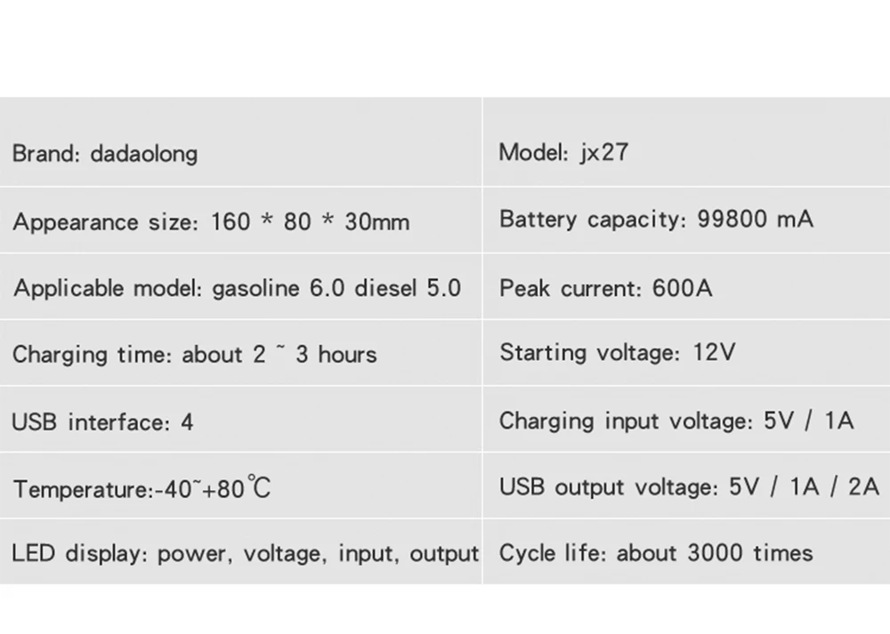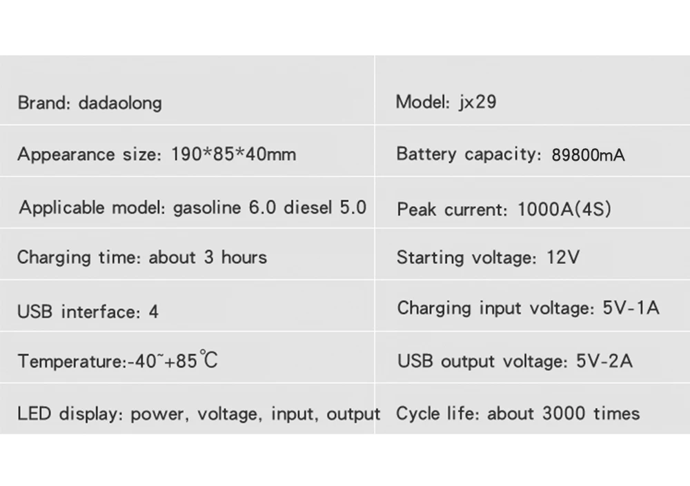 Мой заказ на автомобильный стартер емкостью 89800 мА · ч, 12 В, 4USB, 600 А, портативное автомобильное зарядное устройство, усилитель мощности. Я попробовал это как стартер автомобиля. Я увидел, что этого достаточно для запуска автомобиля 3-4 раза при полной зарядке. Он маленький, легкий и удобный, и я рад, что купил его.