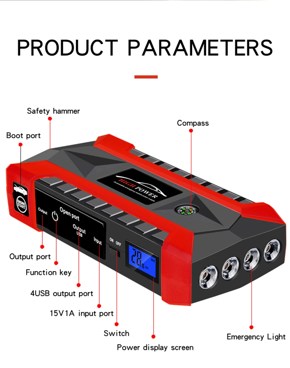 Пусковое устройство для автомобиля, 89800 мА ч, 12 В, 4usb-порта, 600 А