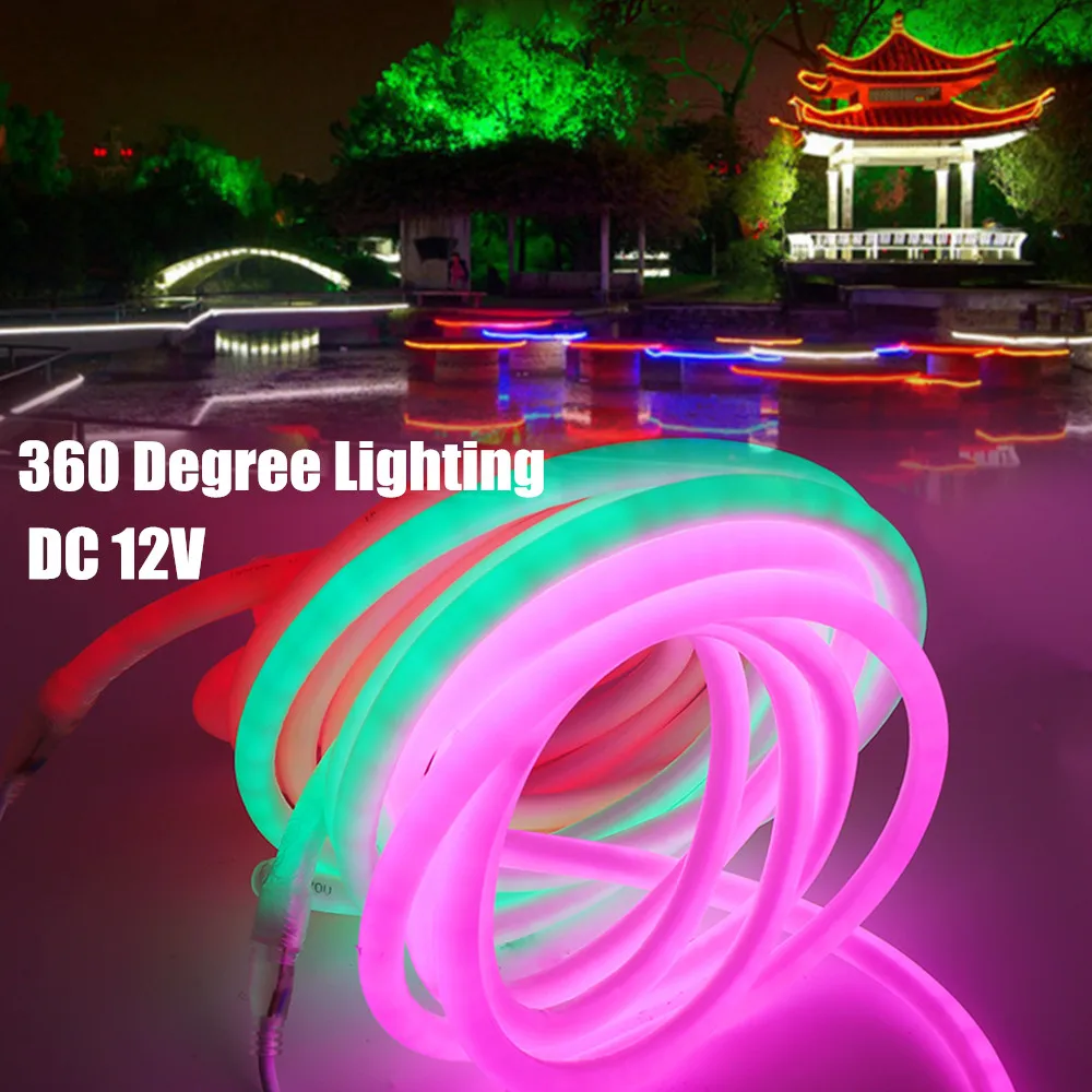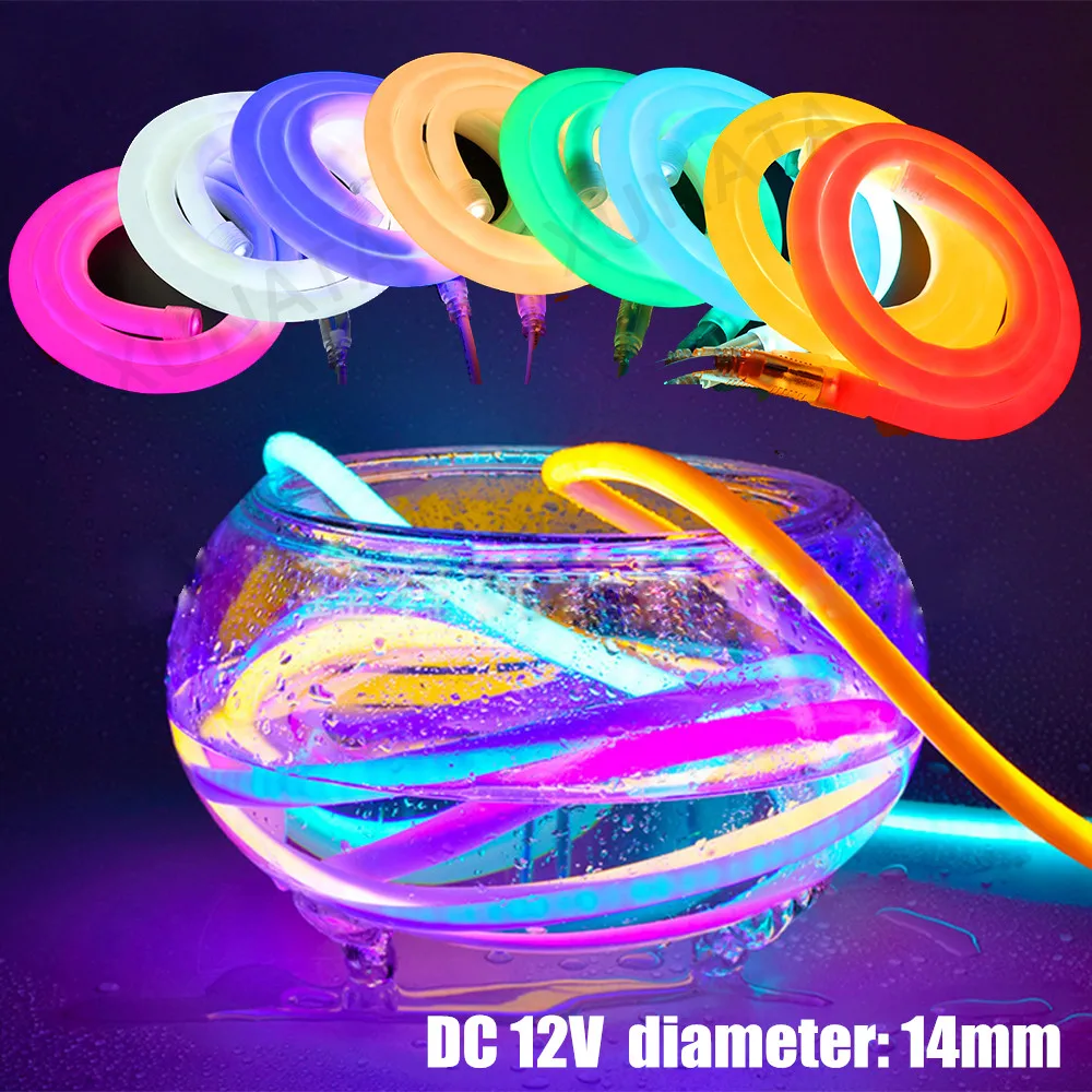 DC 12V неоновые полосы IP67 Водонепроницаемый 360 градусов поворотный диммер 14 мм светильник ing 2835 компании mlight, работающая при напряжении Мягкая Веревка неоновый светильник