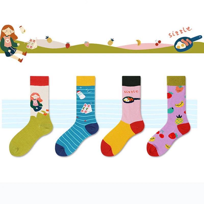 Осенне-зимние парные Разноцветные носки в стиле Харадзюку