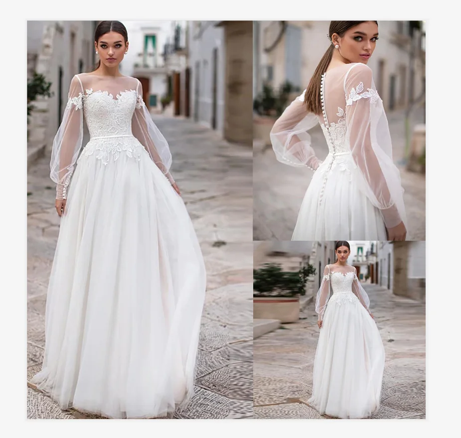 Прозрачное цветочное кружевное свадебное платье с рукавом 34