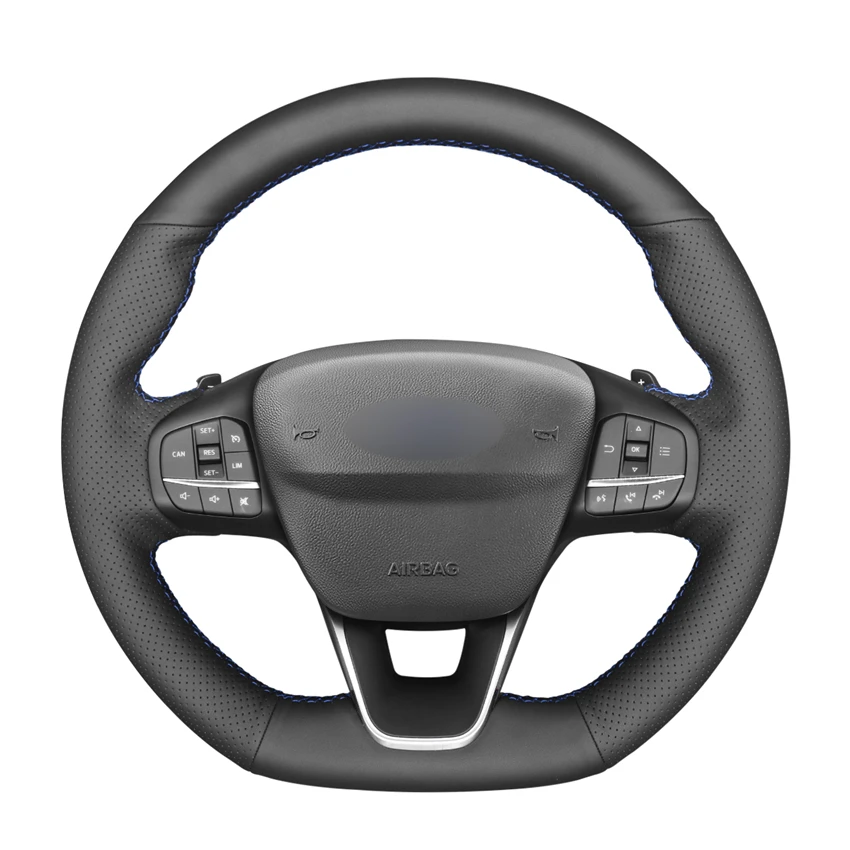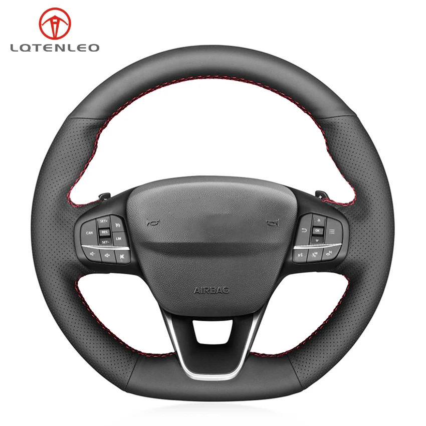 Черная накладка на руль из искусственной кожи LQTENLEO для Ford Focus ST-Line Fiesta ST-Line 2018-2019 Focus Fiesta ST 2018-2020