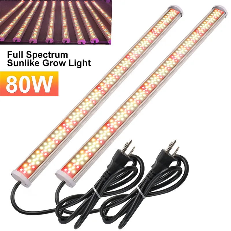 Фитоламсветильник полного спектра для выращивания растений, Светодиодная лента для комнатных теплиц, цветов, овощей, тент с шнуром питания, 2 шт., 80 Вт