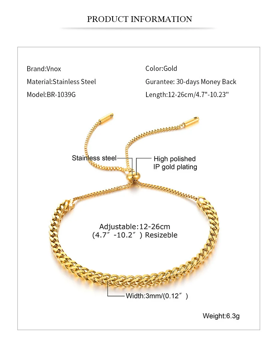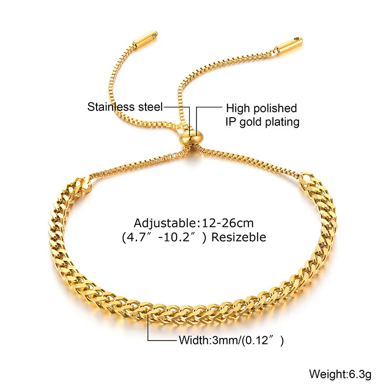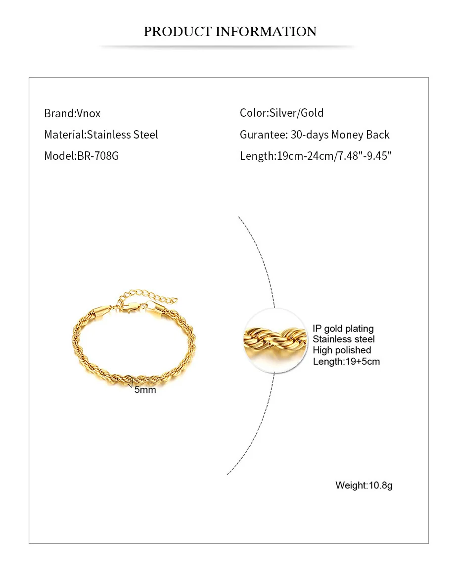 Vnox шик нержавеющая Сталь пшеницы цепи Браслеты для Для женщин и девочек, рок-н-витая веревка цепь браслет ювелирные изделия, Длина регулируемый