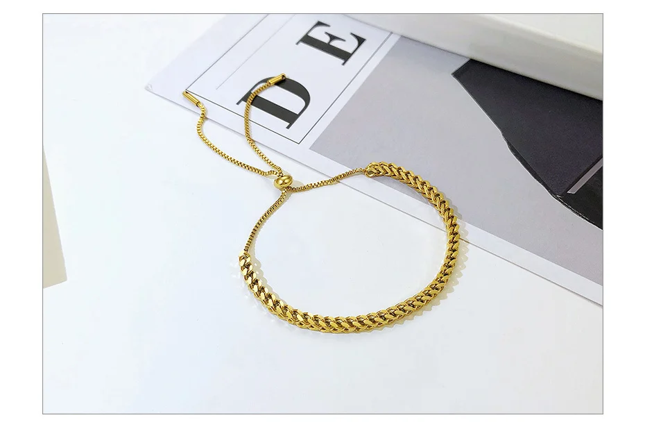 Браслет-цепочка из нержавеющей стали для женщин, простое плетеное Ю...
