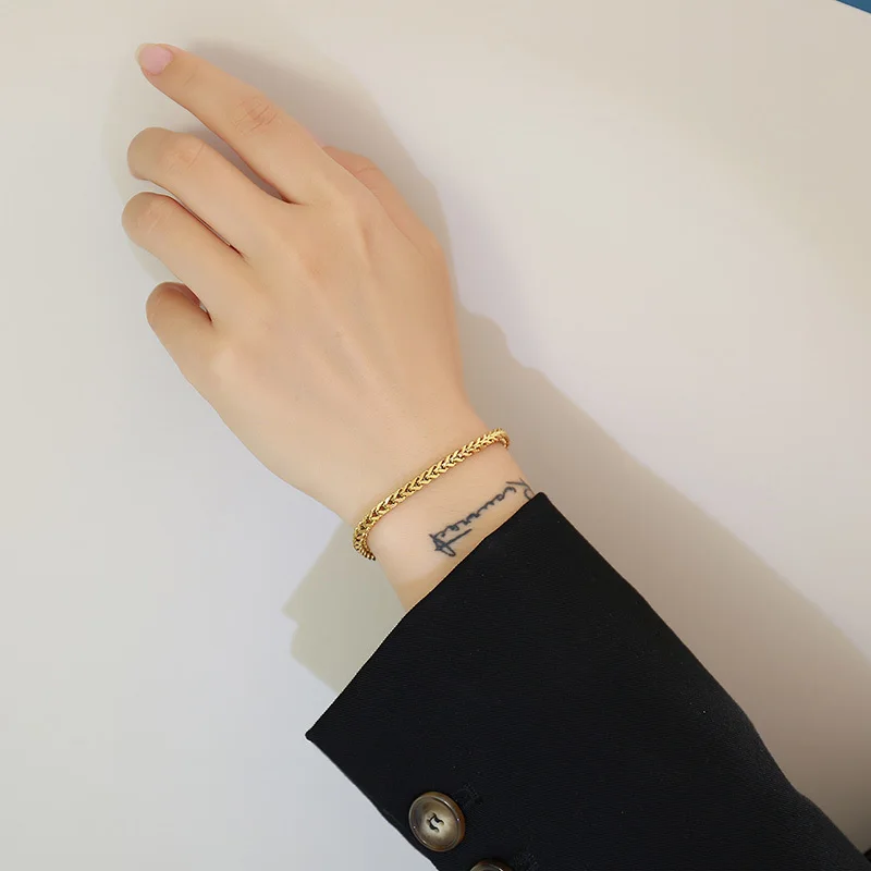 Женский браслет с цепочкой из пшеницы, браслет из нержавеющей стали...