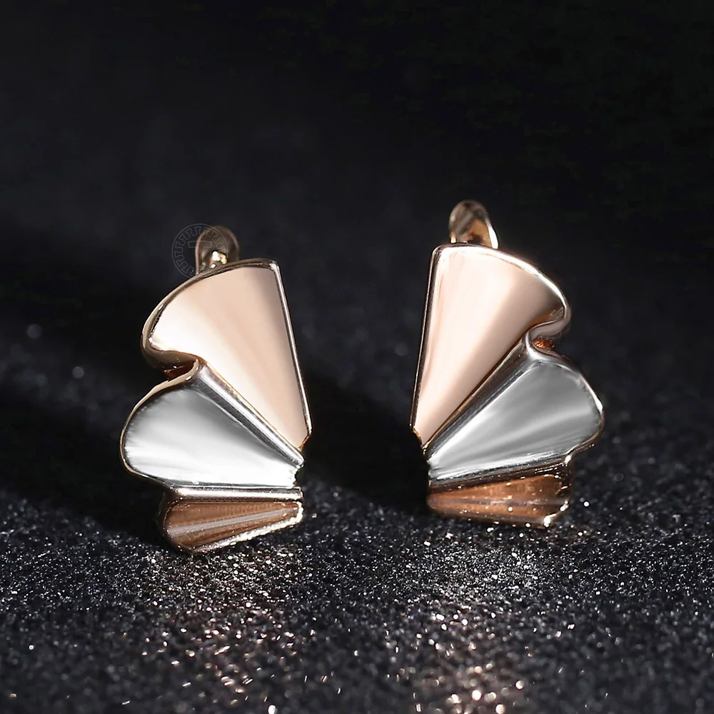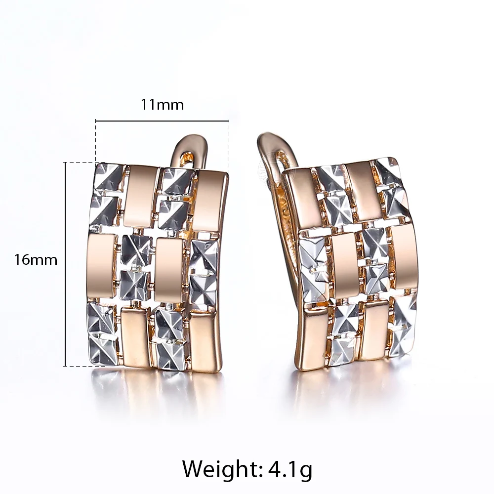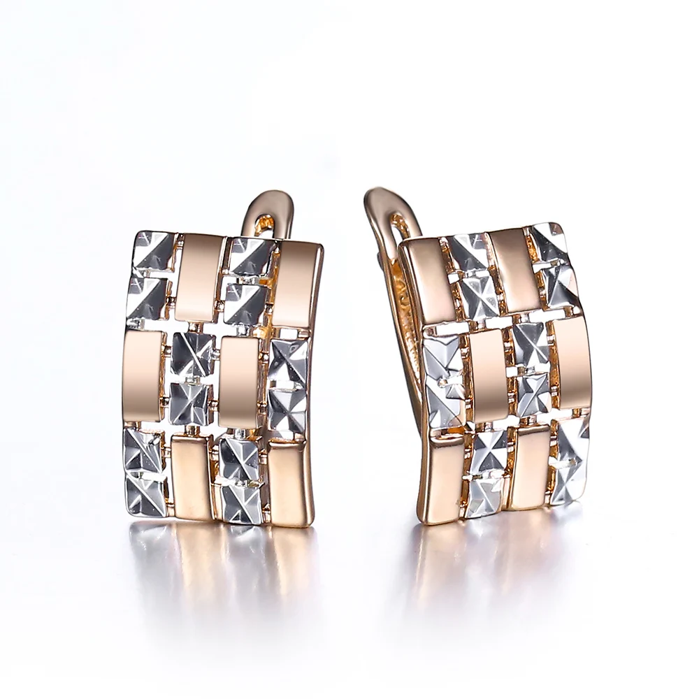 Серьги-гвоздики женские из розового золота 585 пробы, разноцветные, квадратные, широкие, GE311