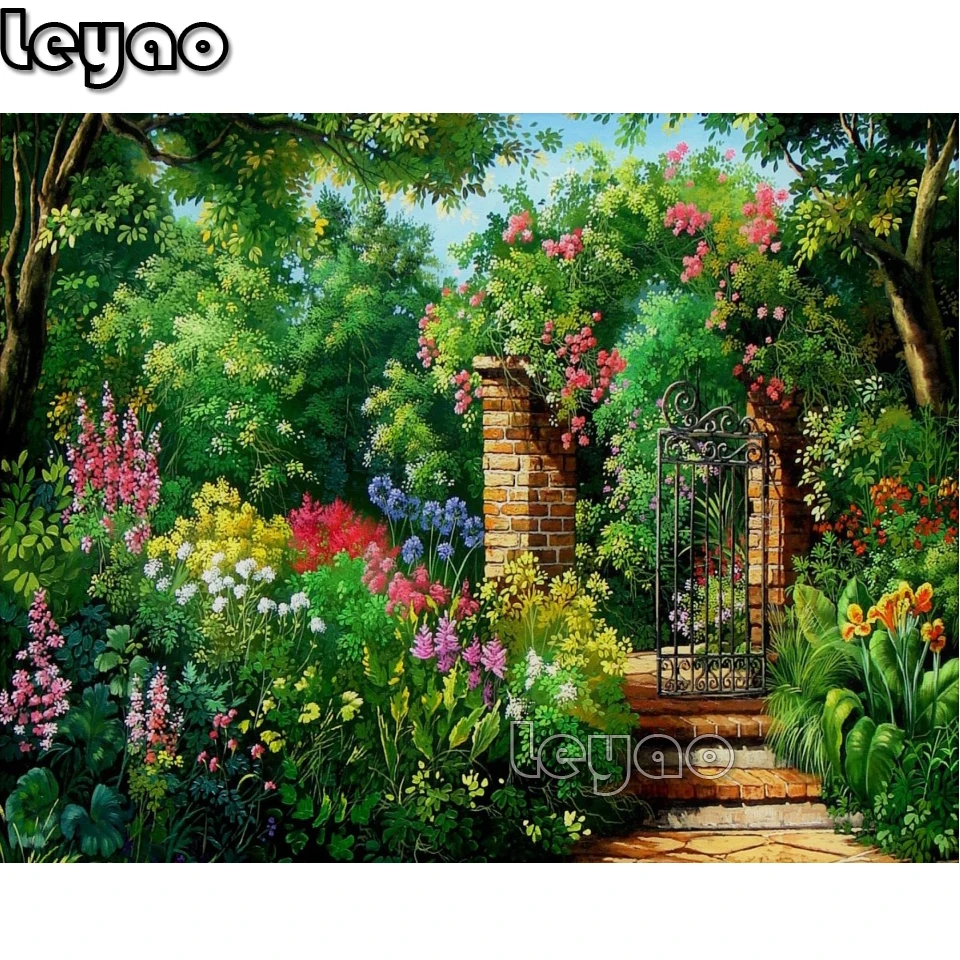 Diy Алмазная картина зеленый сад весенний пейзаж Алмазная картина полный квадратный пейзаж, Алмазная мозаика Рождество для домашнего декора