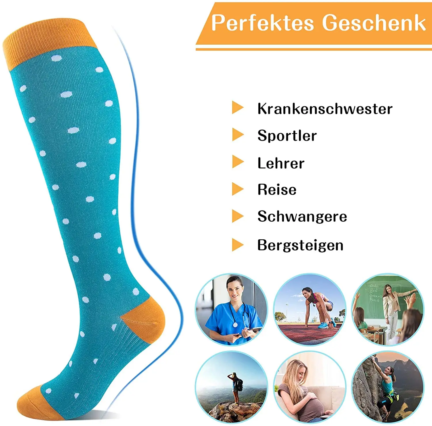 Подходит для профилактики здоровья людей. Например, учители, сотрудники ГИБДД, медсестры, доктора, косметологи, торговые гиды и т. д., и эти носки также подходят для ранних симптомов, таких как венозные сосуды с небольшой нижней конечностью, стоя слишком долго, ощущая болезненность