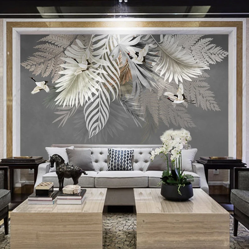 Фотообои 3D Ручная роспись листьев растений для спальни, кабинета, гостиной, фона для телевизора
