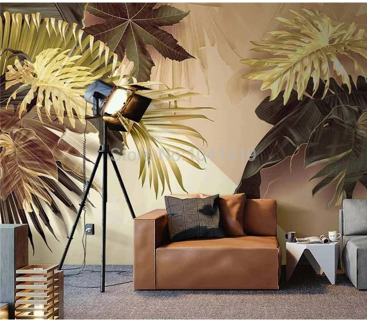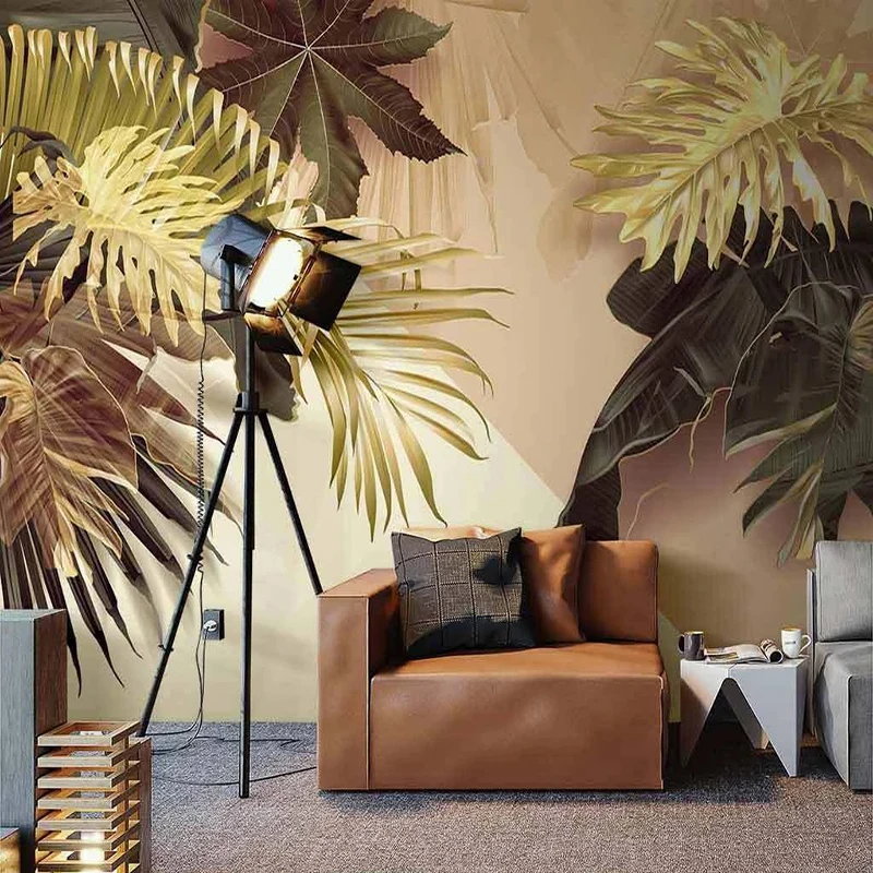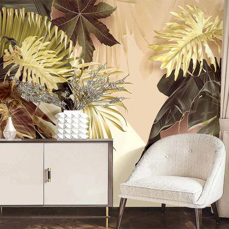 Фотообои на заказ современные 3D тропические растения Золотые листья фрески гостиная ТВ диван креативное искусство Papel де Parede Sala 3 D